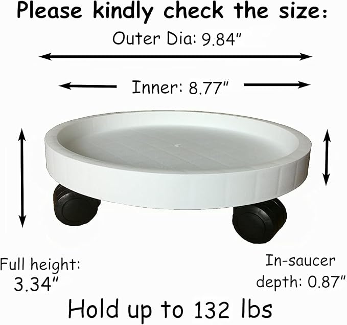 - [Indoor & Outdoor Practical Use]: It's designed to run on patios, wooden floors for outdoors. Also the caddy rolls smoothly over hardwood, concrete, and even carpet, which is perfect for indoor use. Not only suitable for plant pots, but also for anything in your home that needs to be moved, such as an umbrella, humidifier. Three available colors and sizes to perfectly match your home decor or garden.