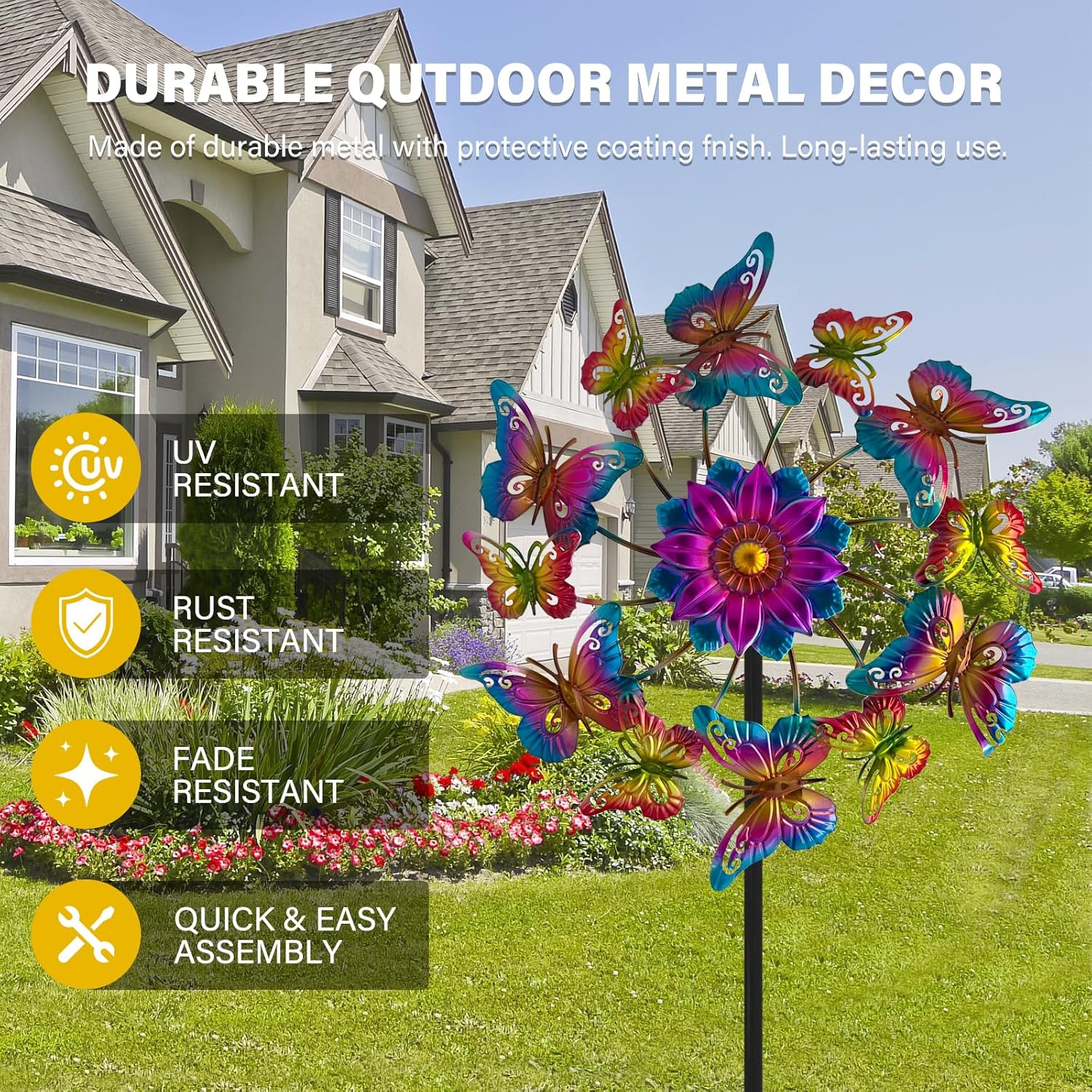 - 【Vibrant Design】Our garden and yard windmill features vivid patterns and natural elements, adding a touch of atmosphere to your outdoor space. The metal windmill rotates with the breeze, creating a serene and relaxing ambiance that helps relieve stress and brings vitality to your everyday life.