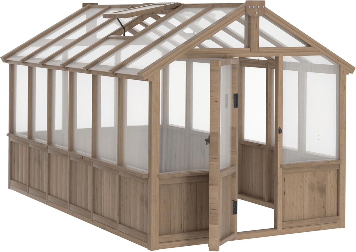 Mupater 6'x12' Wooden Polycarbonate Greenhouse,Outdoor with Ventilated Window and Lockable Door, Walk-in Greenhouse for Backyard, Patio, Lawn, Brown