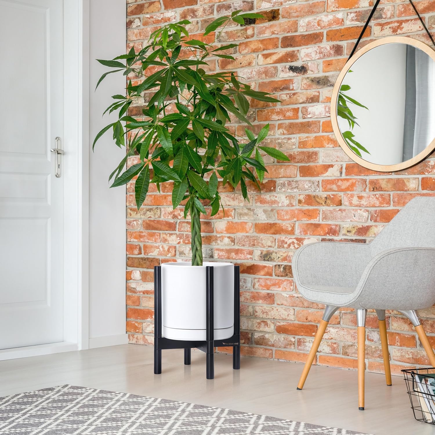 - A Complete Set: Mid-century ceramic planter, combined with a ebony wood stand that match perfectly together and looks great in anywhere.