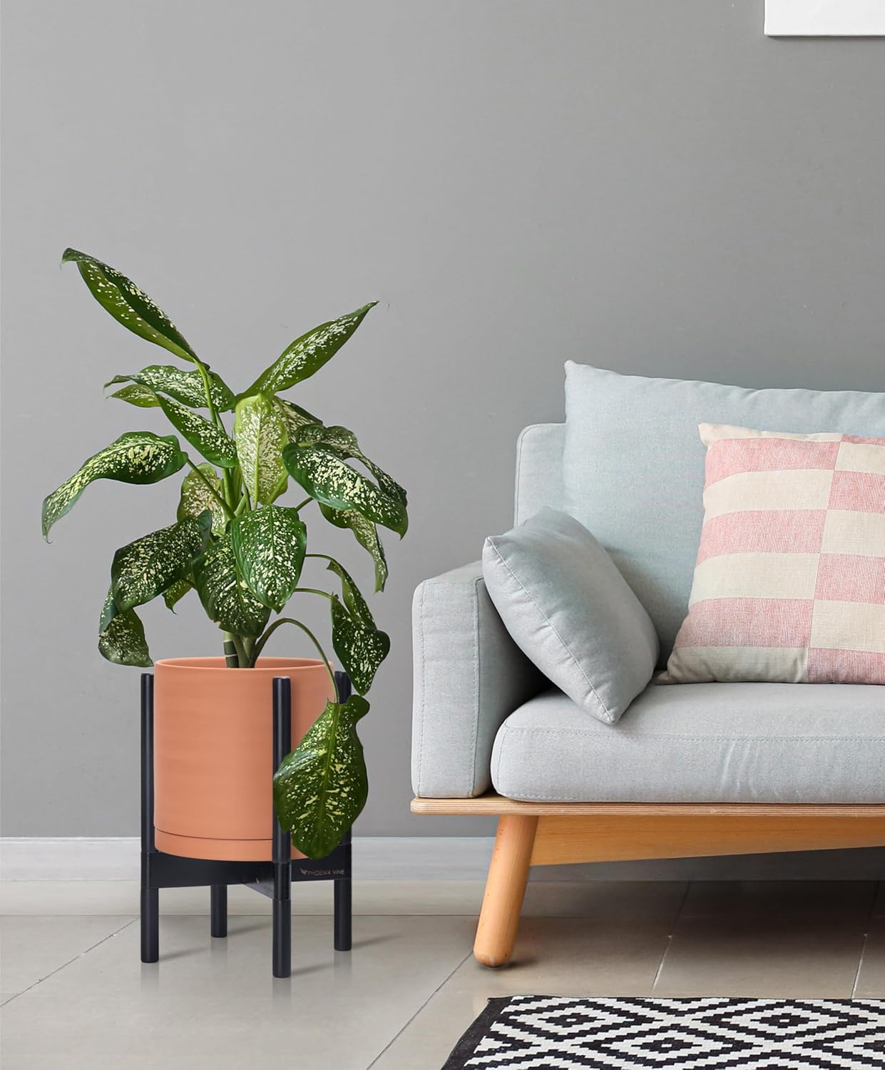 - A Complete Set: Mid-century terracotta planter, combined with a ebony wood stand that match perfectly together and looks great in anywhere.