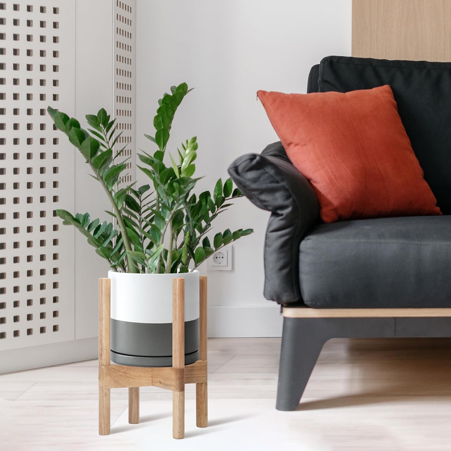 - A Complete Set: Mid-century ceramic planter, combined with a natural color, sculptural, solid wood stand that match perfectly together and looks great in anywhere.