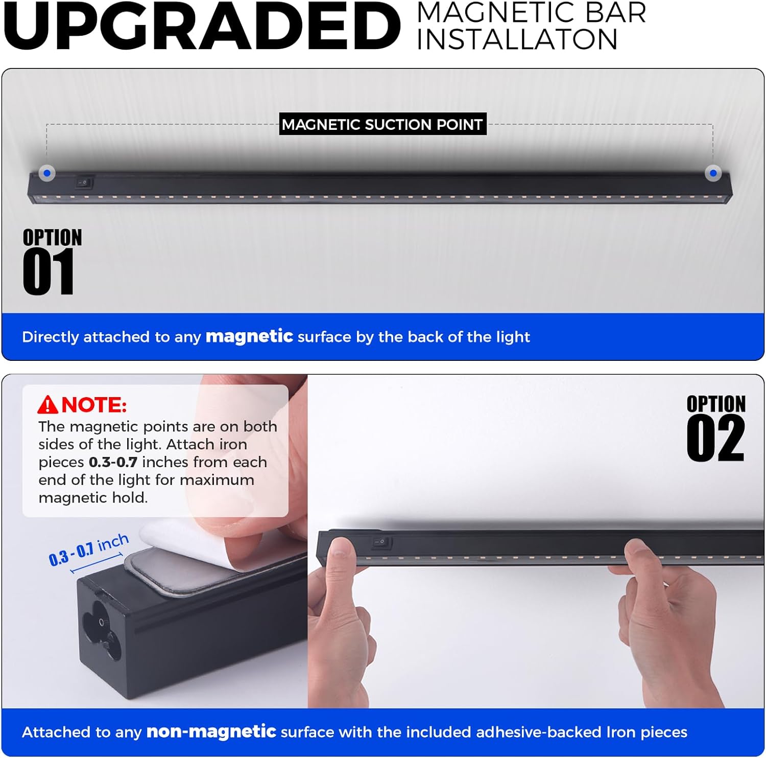 - 4-in-1 Installation:This led plant light with magnetic desigh, which can be directly adsorbed to the metal surface.As well as light light clips, ties, magnetic bars with double-sided tape. Easy installation and time saving