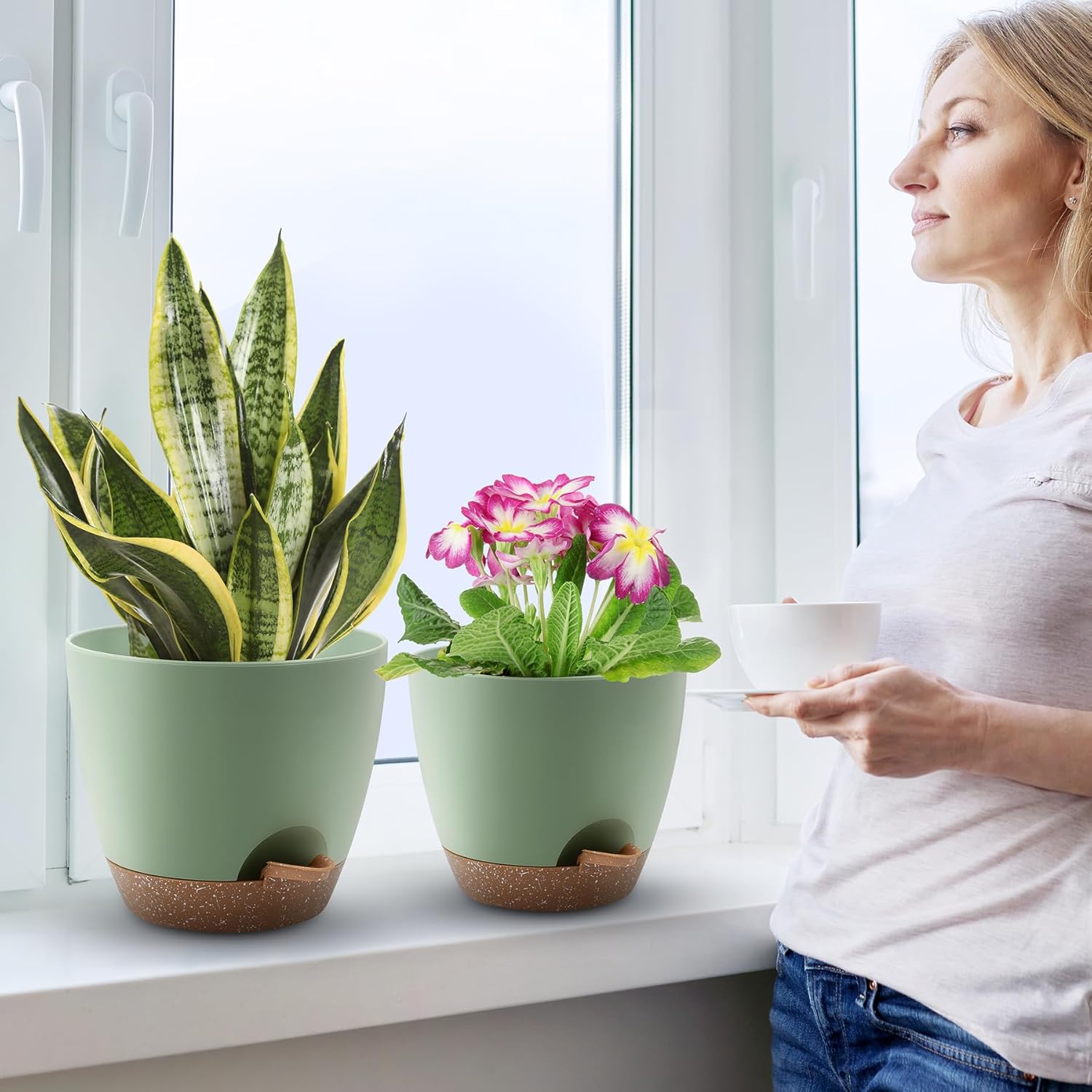 - 【Different Size Combo】These Self watering pots combines with 3 different sizes.12inch/10inch/9inch plant pots.Suitable for indoor and outdoor planting of various plants and flowers,Such as Snake Plant,ZZ Plant,Aloe,African,Violet,Monstera etc.