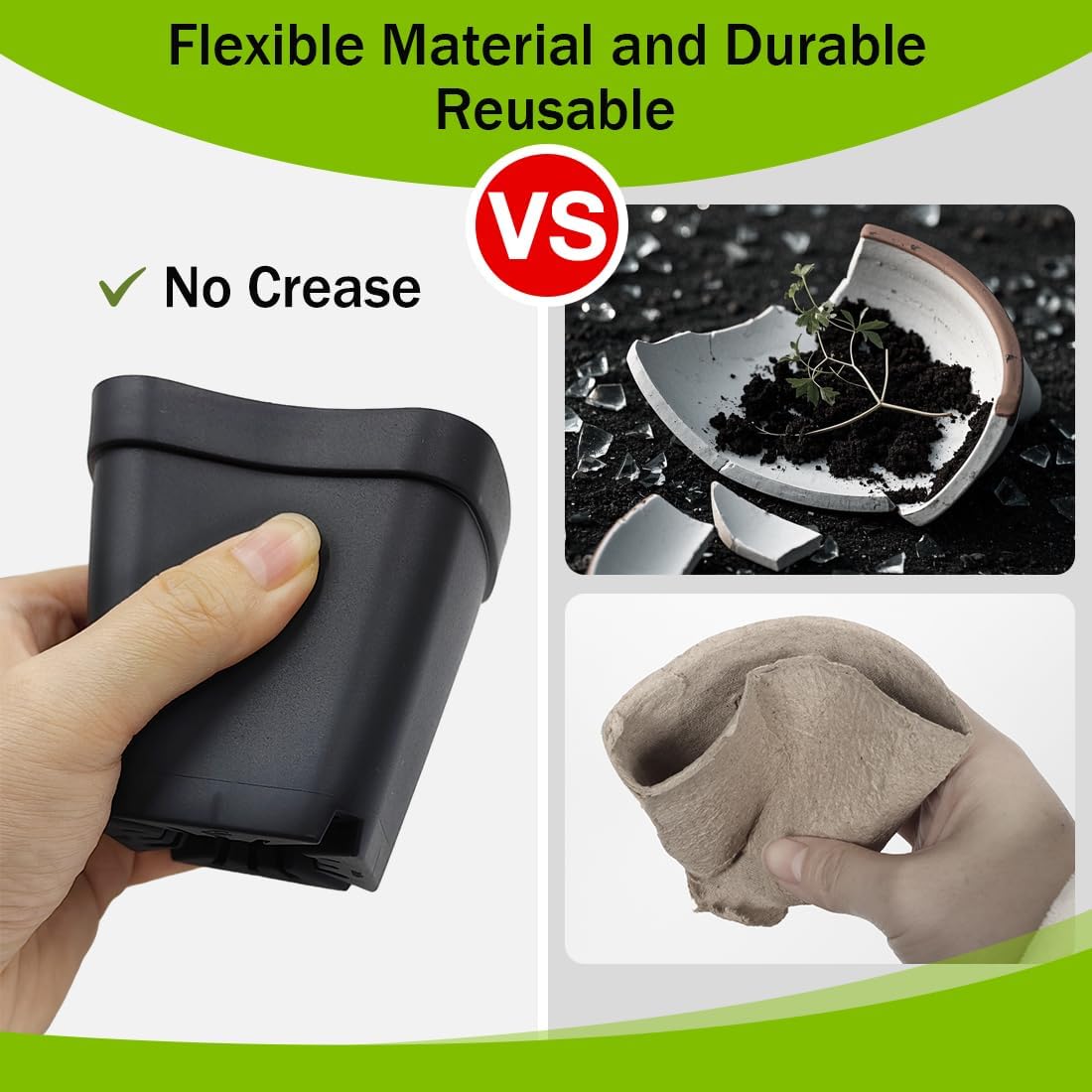 - 【Reusable Nursery Pots & Trays】Crafted from BPA-free plastic, ensuring safety for both users and plants. Made with flexible materials, these seedling pots have smooth surfaces and edges, minimizing root disturbance during transplanting and are easy to clean.