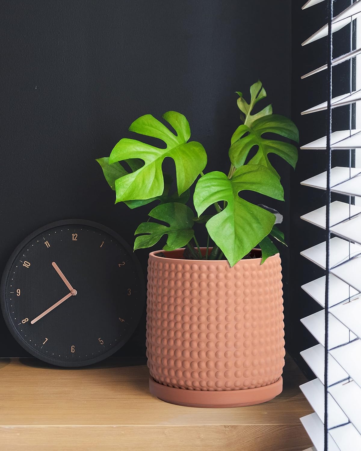 D'vine Dev Set of 2 Ceramic Plants Pots, 6 Inch Beaded Stoneware Flower Pot for Plants with Drainage Hole and Saucer, Terracotta, 27-E-X-7