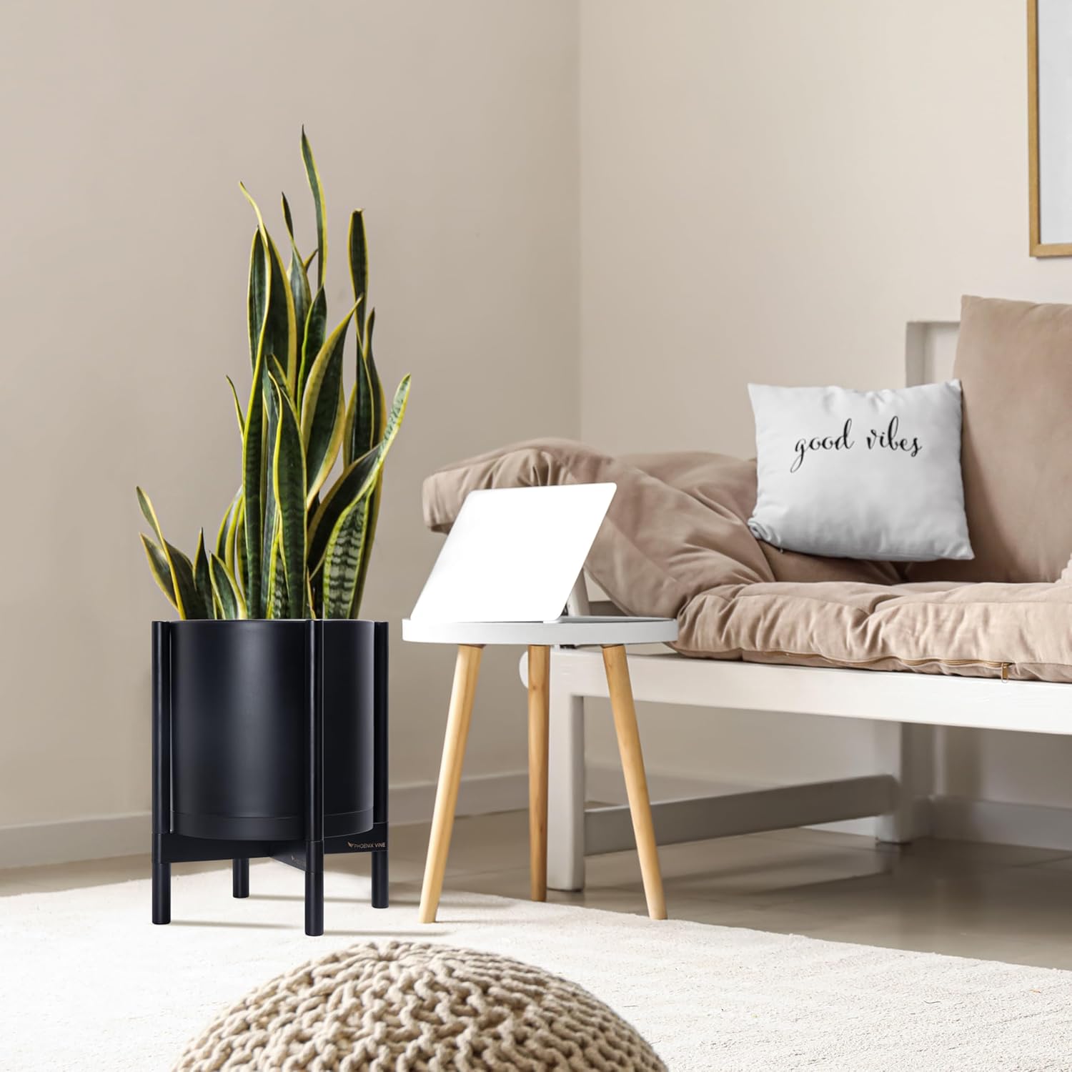 - A Complete Set: Minimalist plastic planter, combined with a sculptural, solid wood stand that match perfectly together and looks great in any home.