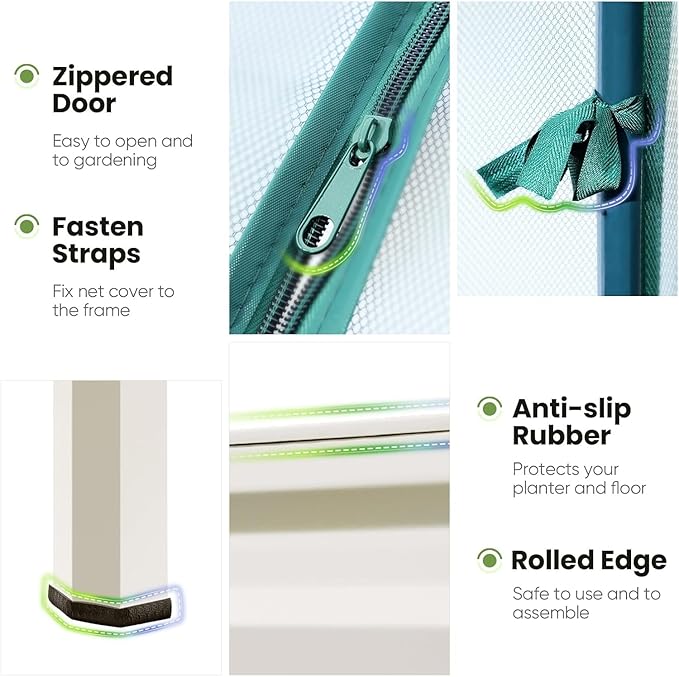 - 【3-Way to Use】Equipped with both bird netting and a greenhouse, the netting allows for ventilation while effectively protecting your plants from birds and other small animals. Use the greenhouse to promote plant growth during the winter and spring. You can also remove the top frame to let the plants keep growing.