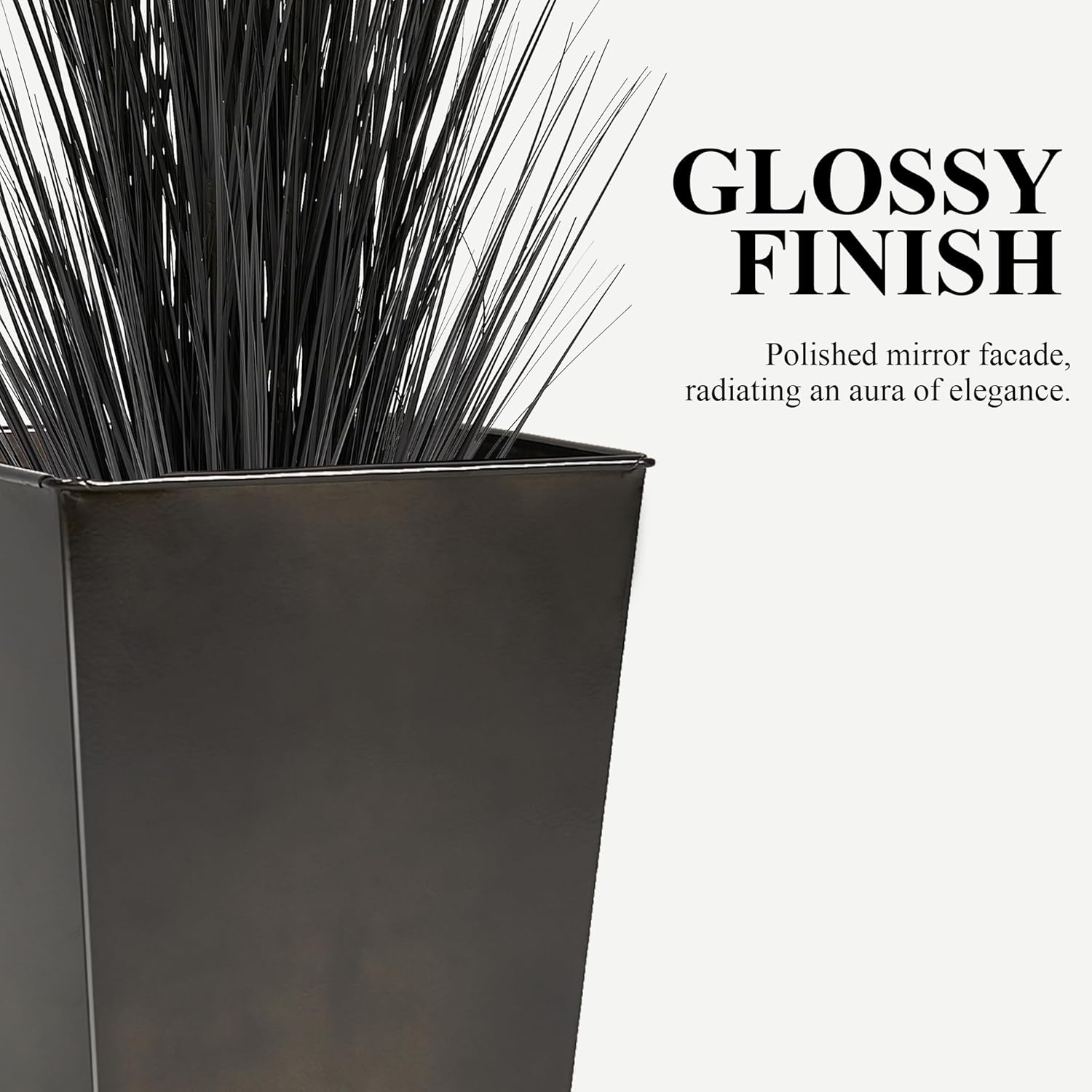 Worth Garden Large Metal Glazed Floor Planter Set of 2-14" Dia x 18" H - Luxurious Glossy Finish Black Tall Square Tapered Steel Plant Pots, Decor Flower Pot Indoor & Outdoor, Drainage Hole