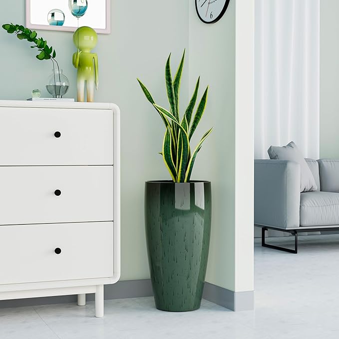 - DURABLE MATERIAL: Tall planter is made of plastic and stone composite, with beautiful texture and not heavy body. Thickened inner-wall makes it crack resistant, scratch resistant, UV resistant, colorfast all day long.