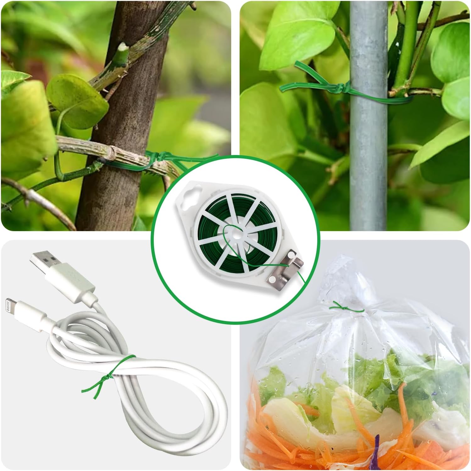 2 Pack 492FT Garden Twist Tie with Built-in Cutter, Rustproof Green Coated Plant Ties for Gardening, Flexible Reusable Tomatoes Ties Support for Indoor Outdoor Home and Office Use