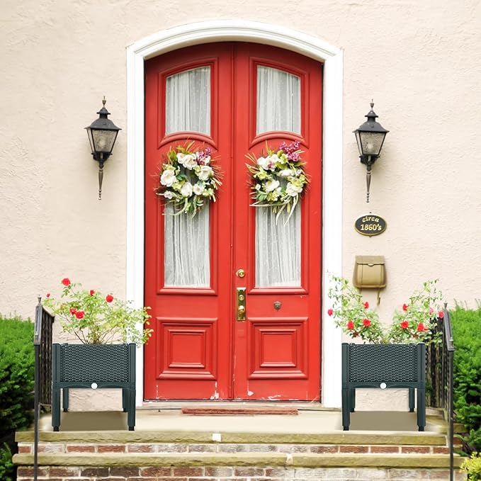- Durable Construction: Made of reinforced PP in rattan pattern, each planter box sizes 15.7"L x 15.7"W x 16.5"H with leg. 47.2"L overall. Lightweight, stylish yet sturdy for long time use