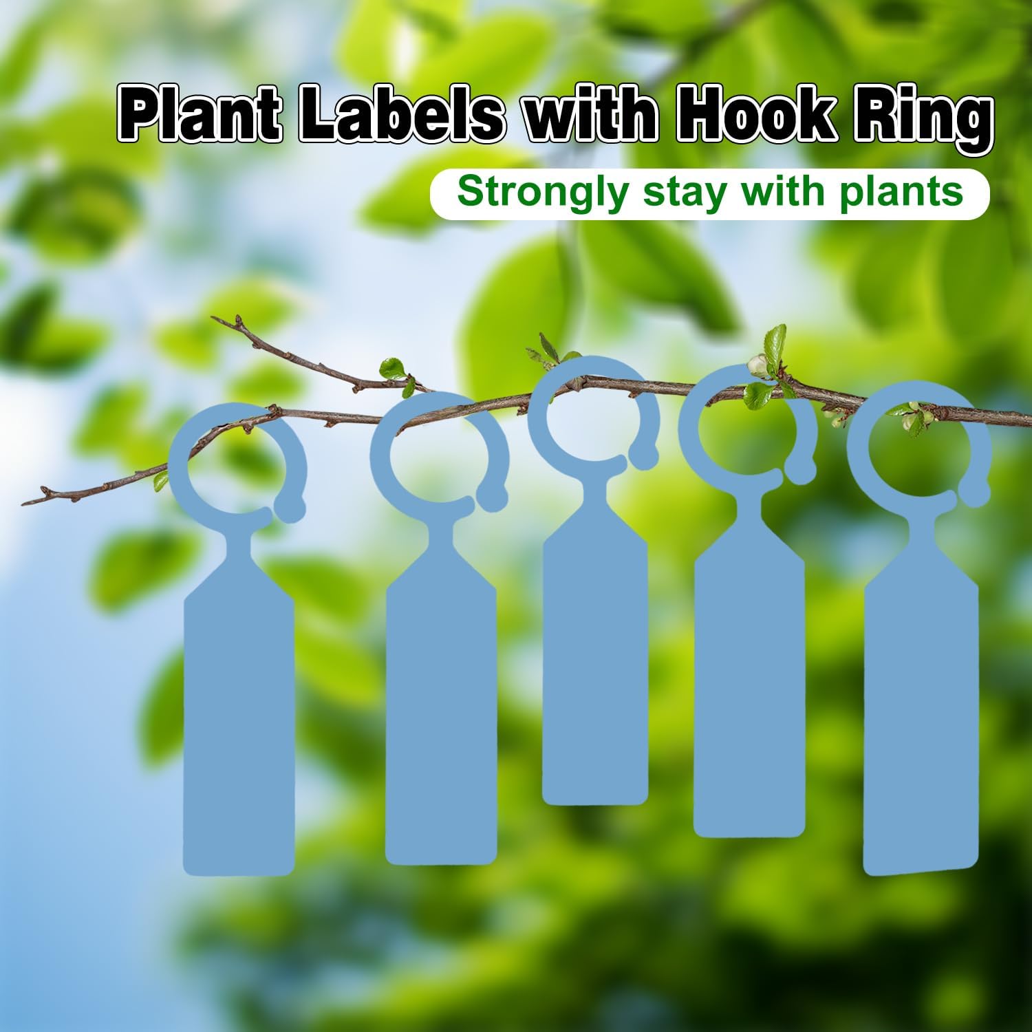 Plant Labels Yuanling 100Pcs Plastic Waterproof Plant Tree Tags Nursery Garden Markers for Indoor Outdoor Gardening Plants Vegetables Flowers Potted (Blue Color with 1 Marker Pen)