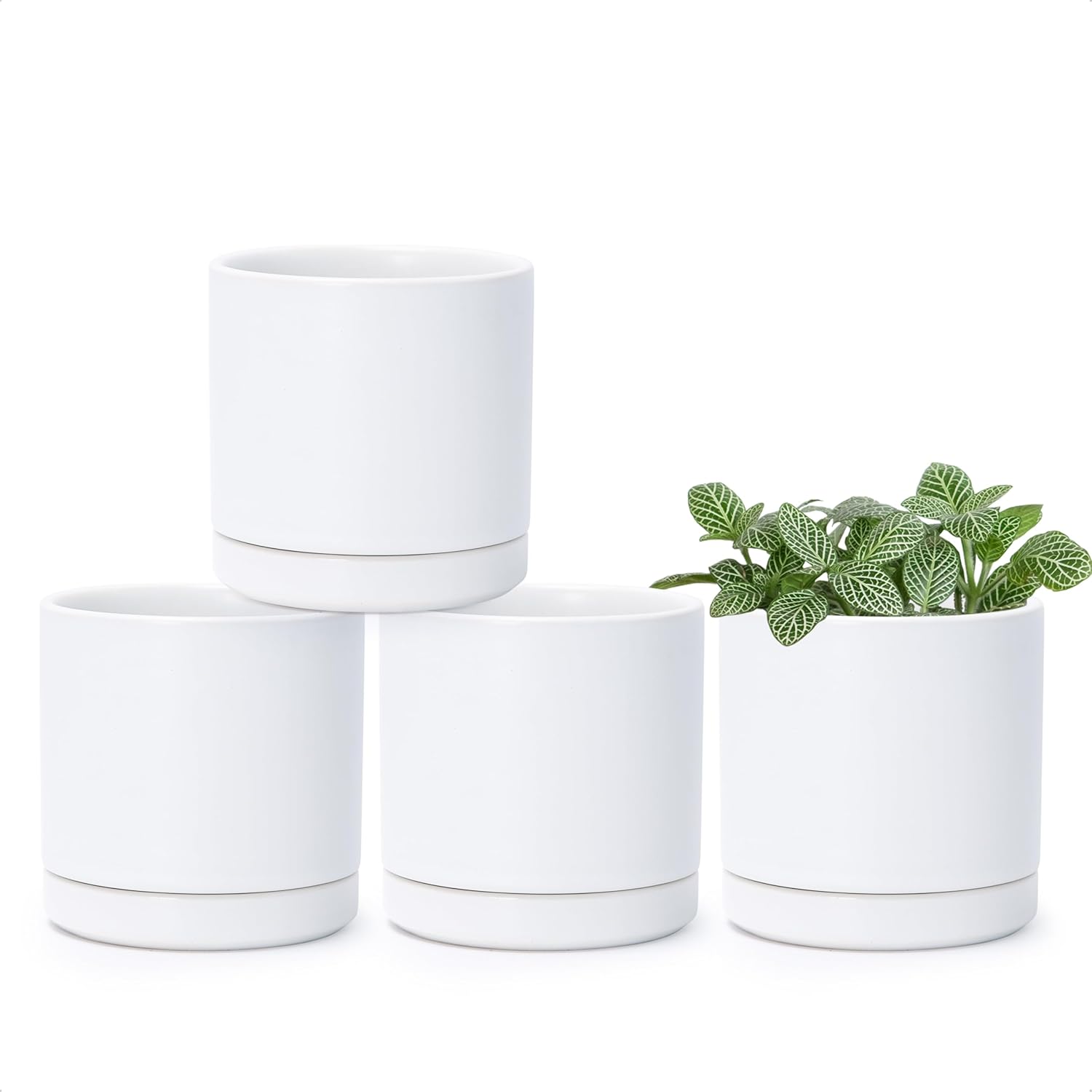 - Drainage holes and detachable/perfectly fitting ceramic saucers included.