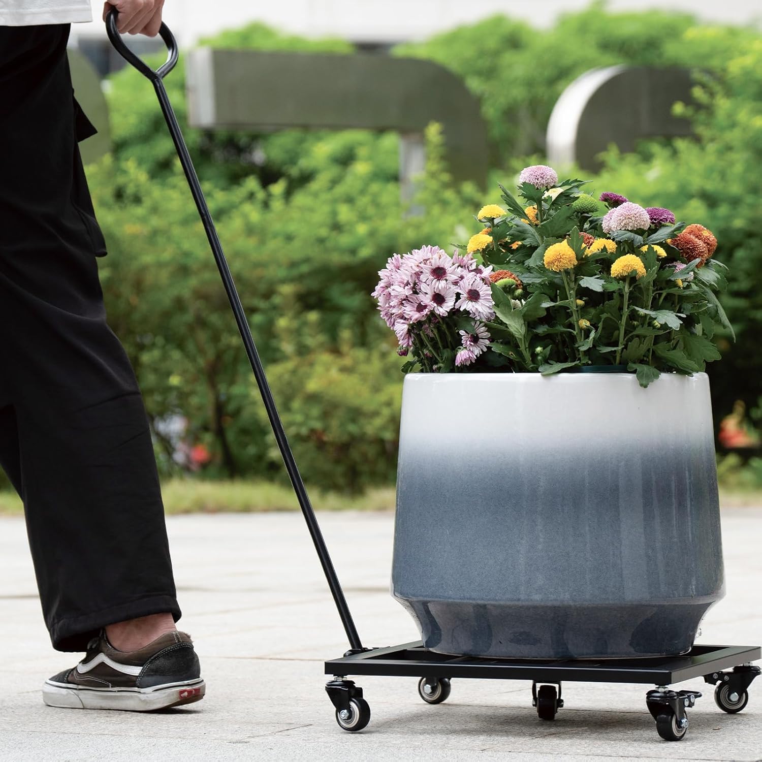 - - Patented Design: Our plant cart with wheels features a removable handlebar that easily slides in and out of the groove, allowing you to move your plants without bending over. Perfect for those with back issues or elderly plant enthusiasts.