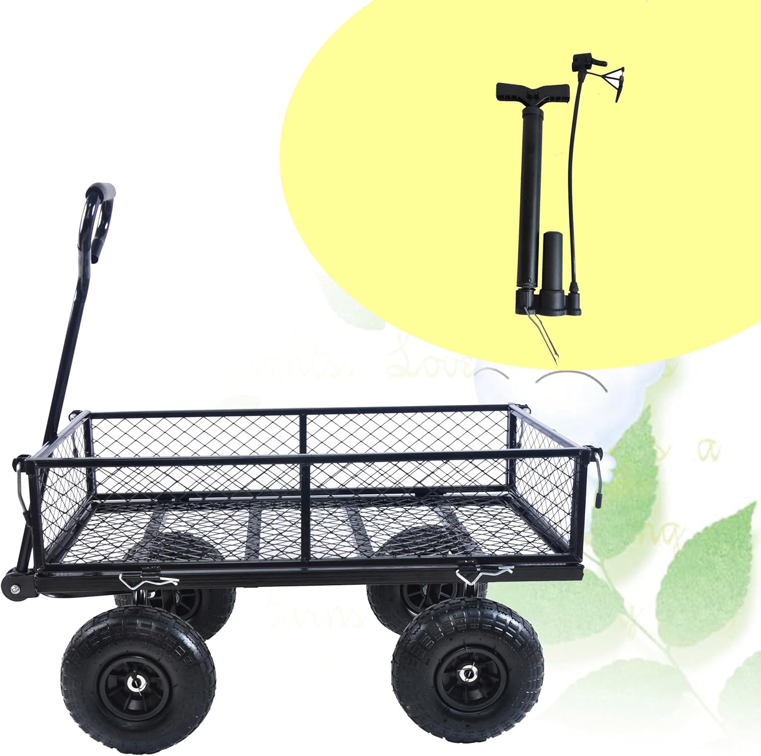 Wagon With Removable Sides for Farms, Warehouses - Garden Dump Cart With Air Wheels (Black) - Essential for Your Dream Garden