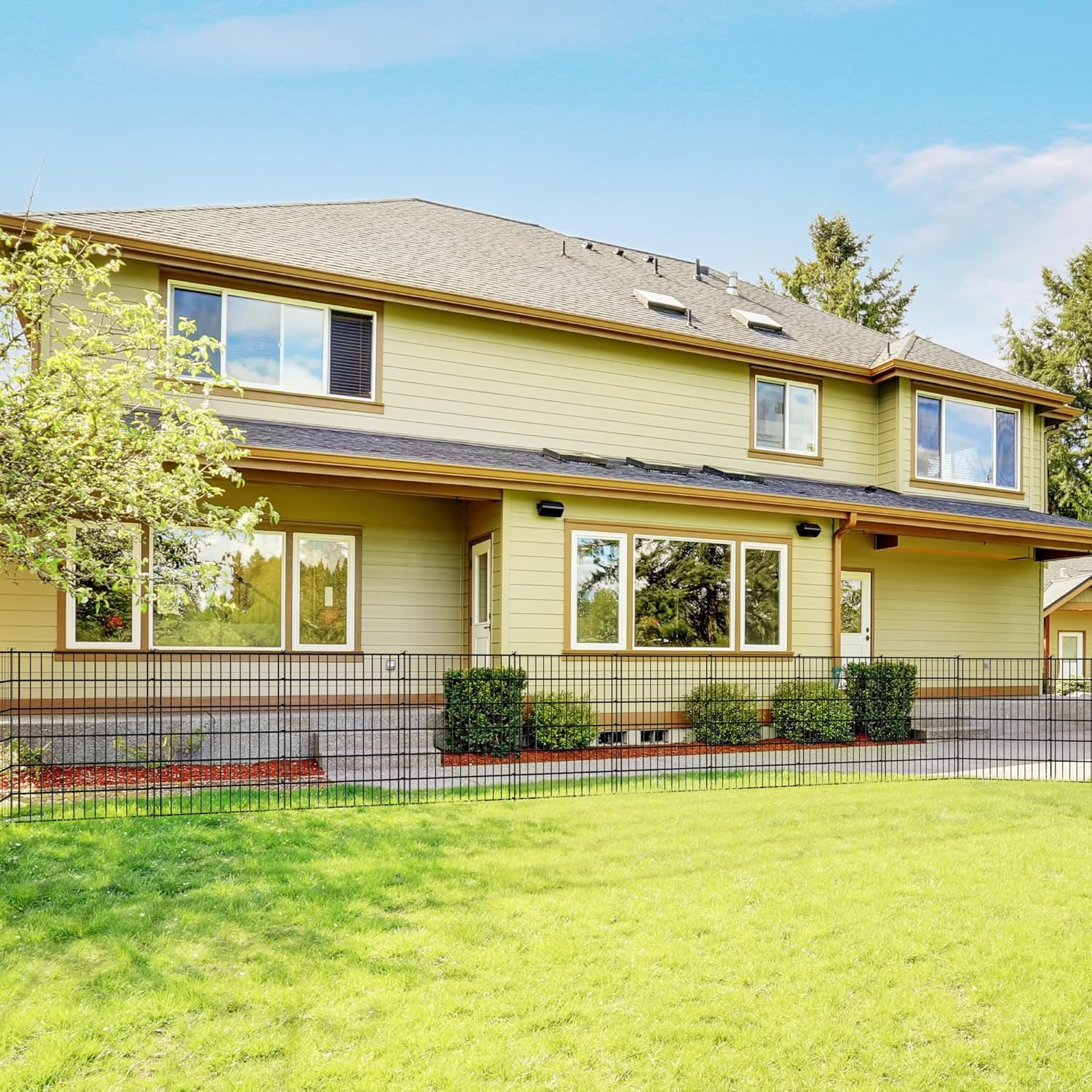 - 【Stylish Design】Our fence outdoor for yard feature a sleek and stylish design that will add a touch of elegance to your outdoor space.The sleek black metal finish adds a modern flair, making it a perfect fit for defining garden borders, creating a safe play area, or keeping pets contained.