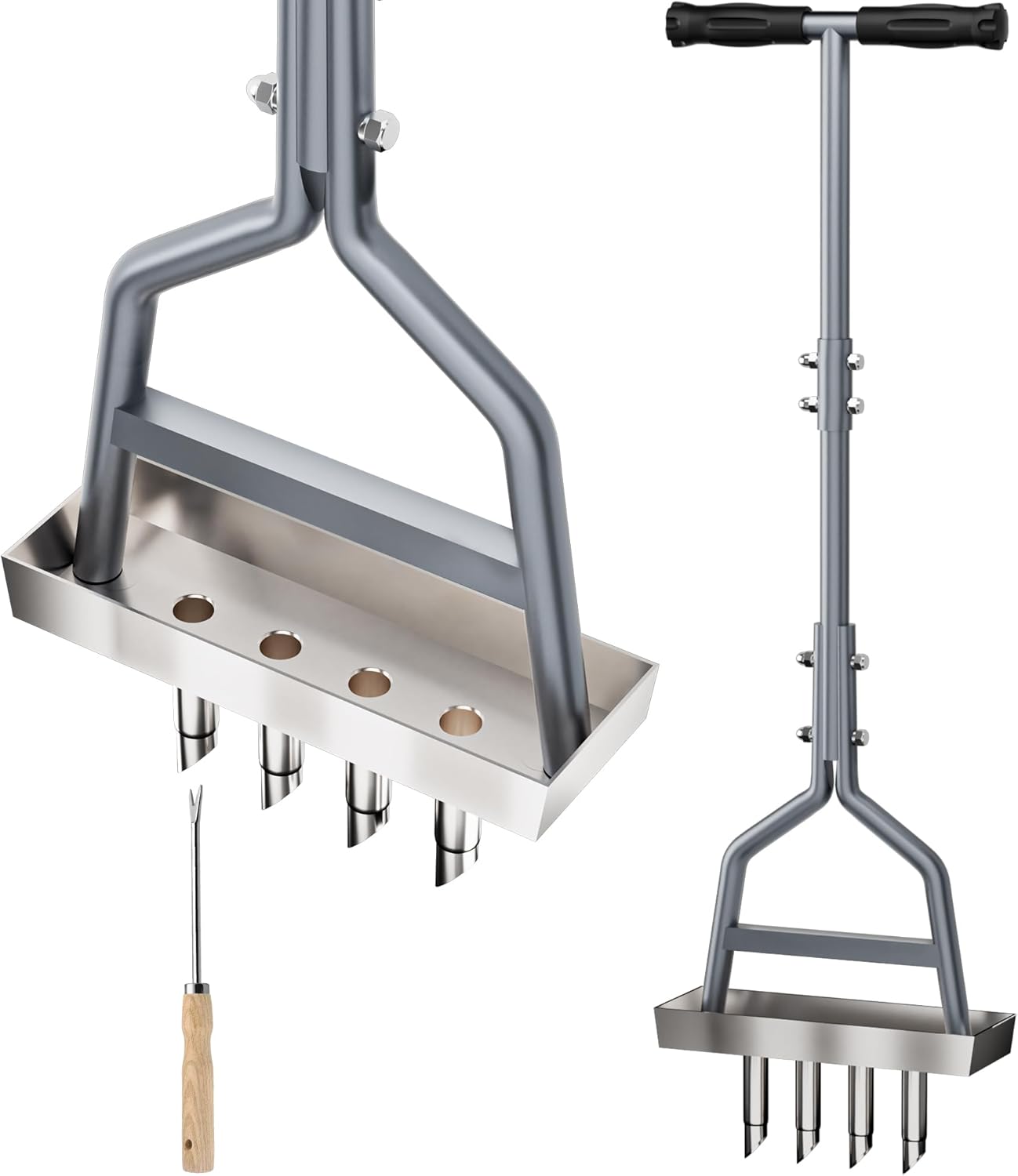 - 【Upgrad Stainless Steel Material Soil Storage Tray】Our newest lawn aerator adds soil storage Tray. Coring soil squeezed out during the aeration process is contained in the storage frame rather than scattered across the lawn. It saves you from cleaning the lawn, and also makes your lawn more tidy and beautiful!