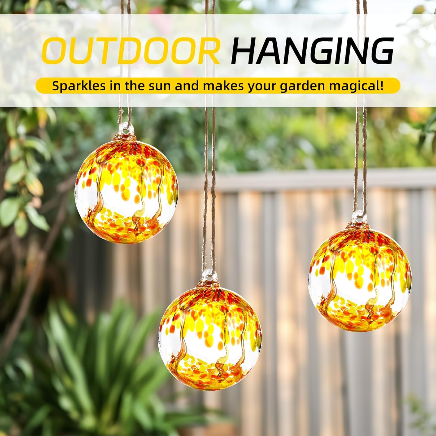 - 【Unique Art】Our hanging glass balls are mainly orange and yellow, with bright colors, beautiful and elegant, full of artistic atmosphere. In the sun, the sphere reflects amazing colors, sparkling, adding a touch of bright color to the environment