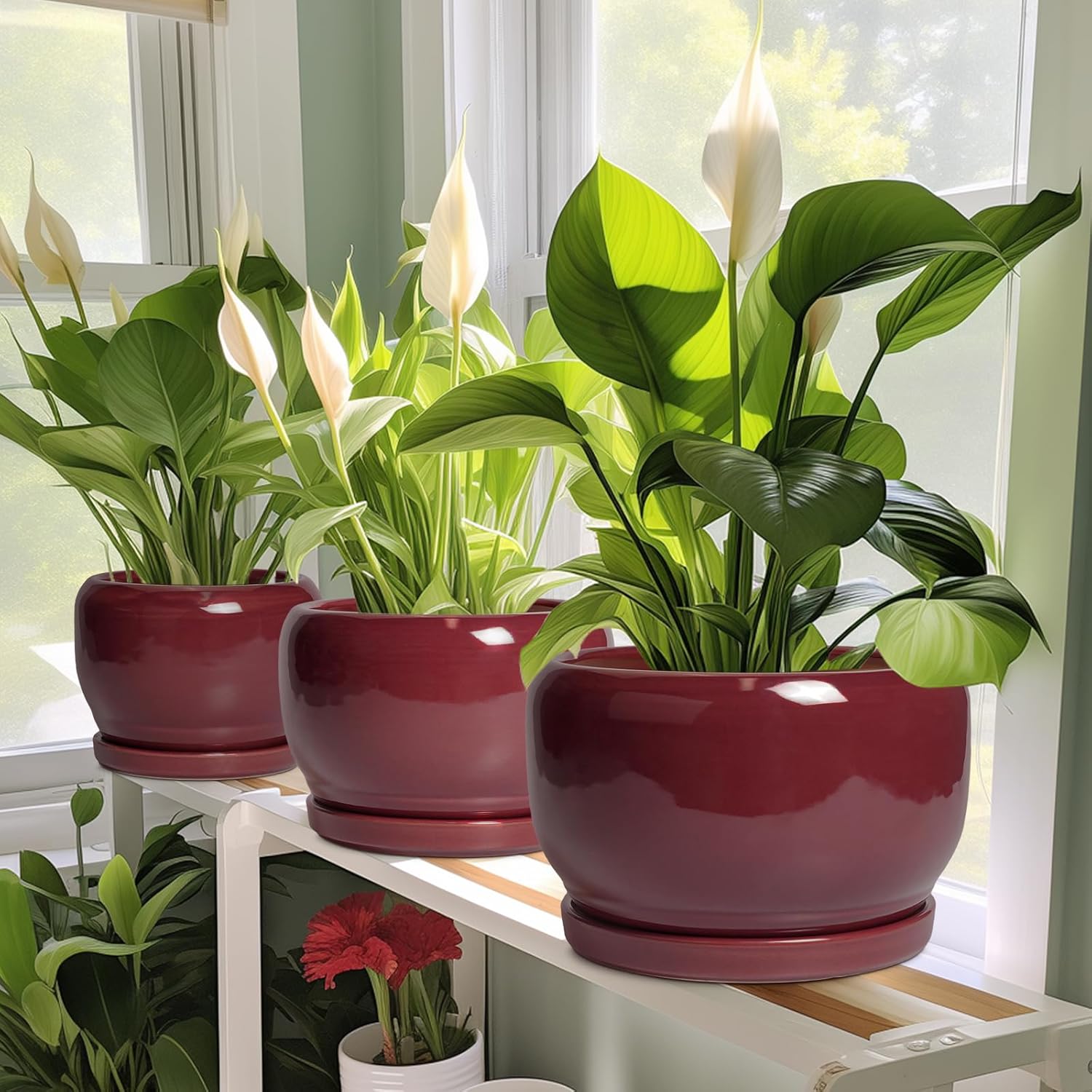 - Modern Design: Our ceramic pots for plants features a beautiful and smooth red glaze finish, suitable for decorating your window, bedroom, table, book shelf, desk, home, house, patio, porch, balcony, office, garden and more