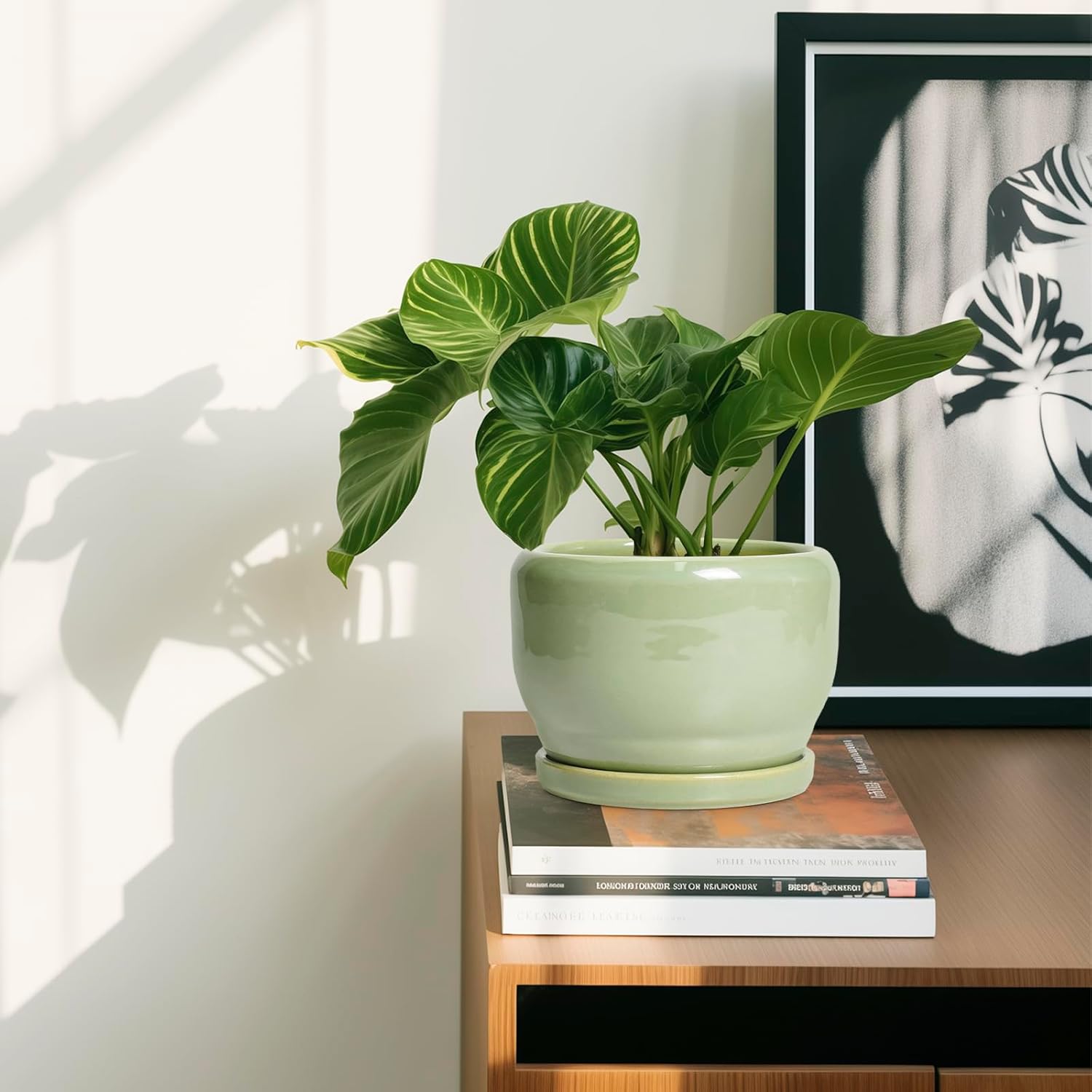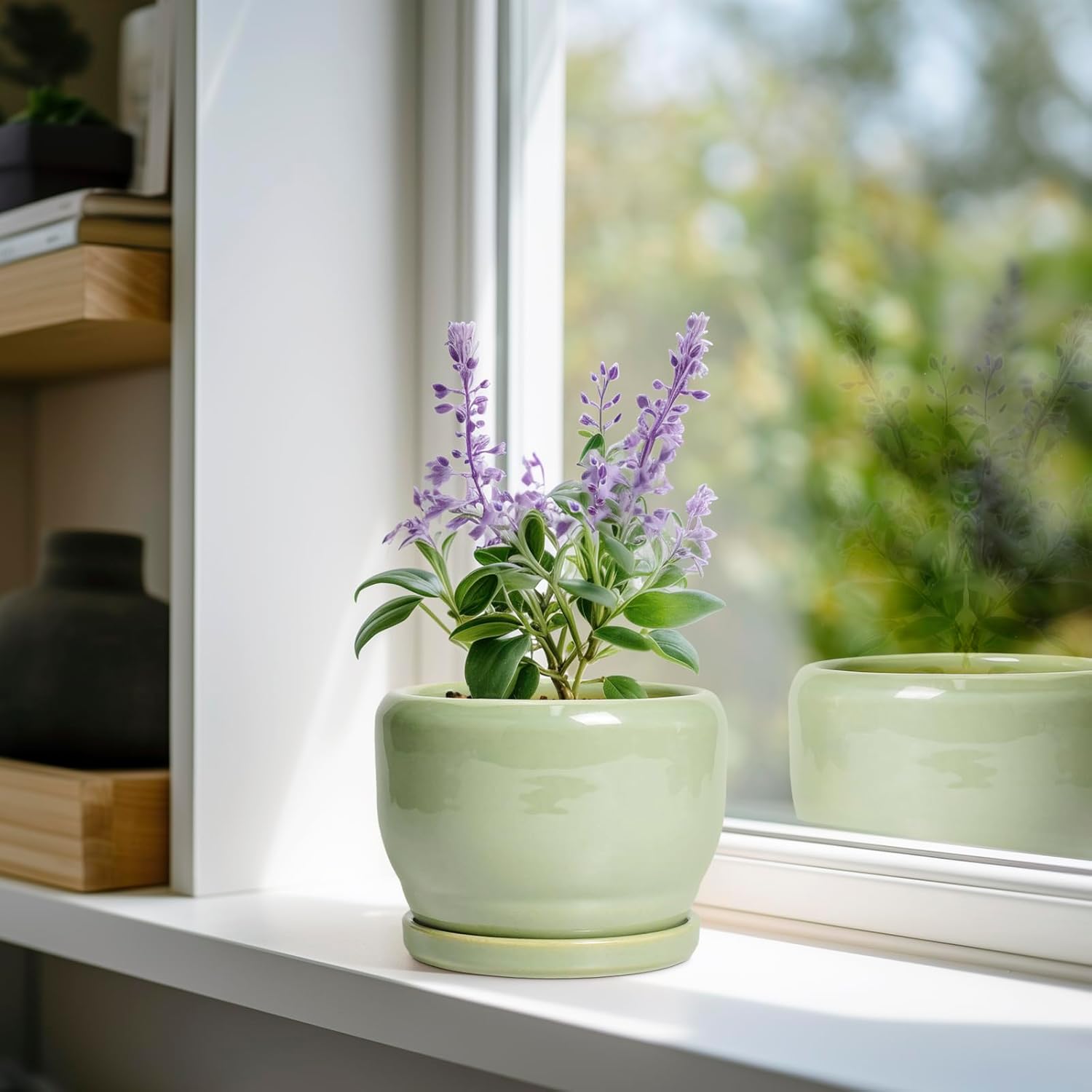 - Modern Design: Our 6 inch plant pot features a beautiful and smooth green glaze finish, suitable for decorating your window, bedroom, table, book shelf, desk, home, house, patio, porch, balcony, office, garden and more