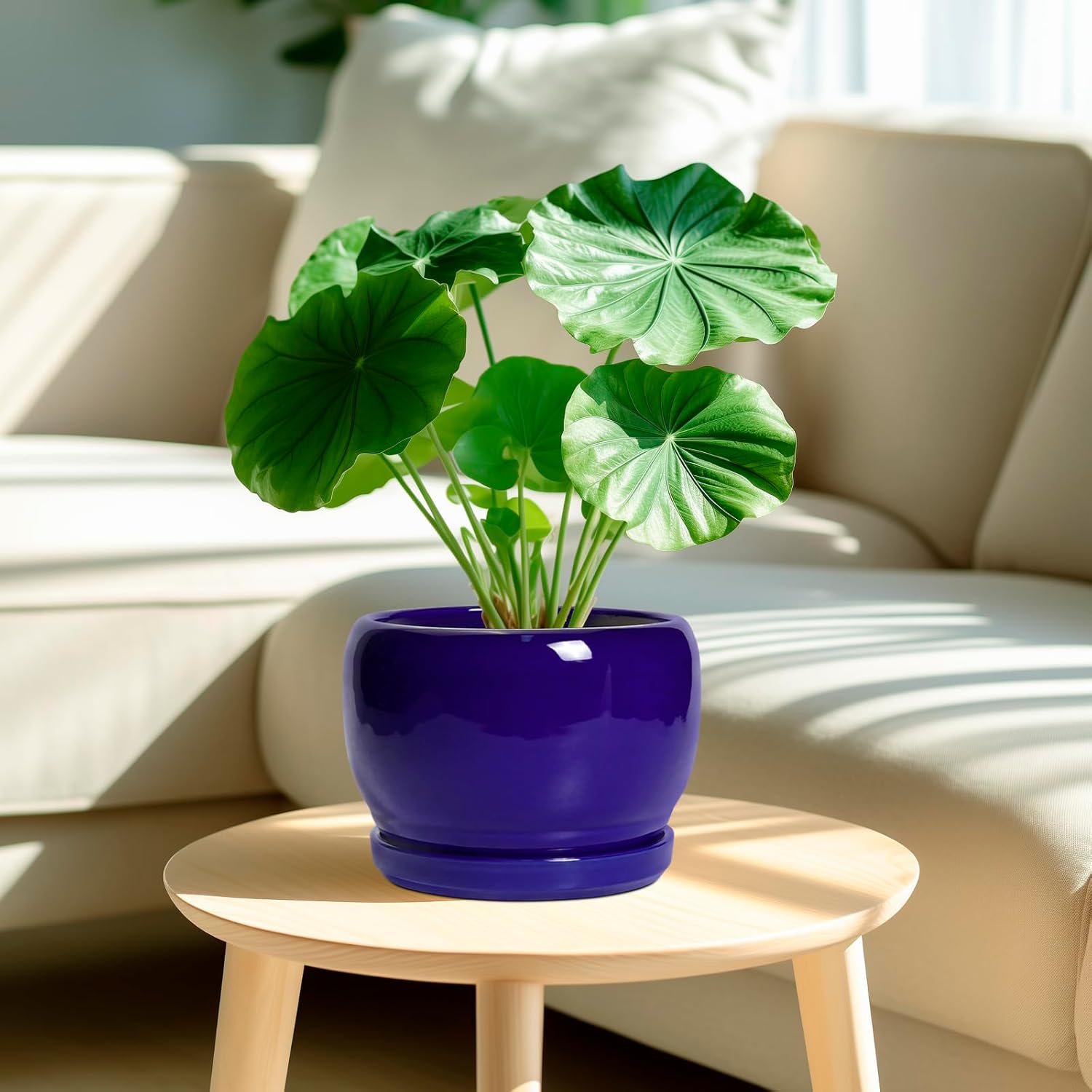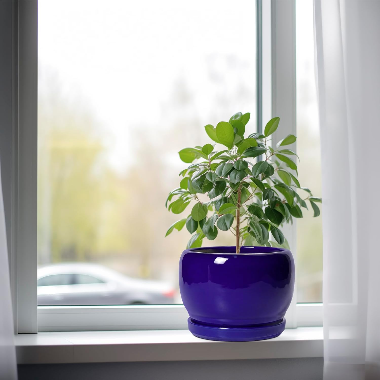 - Drainage Hole and Saucer: Drainage hole of 8 inch planter pot efficiently removes excess water, helping your plants thrive. The ceramic tray catches any overflow, so you can place the blue planter anywhere with confidence