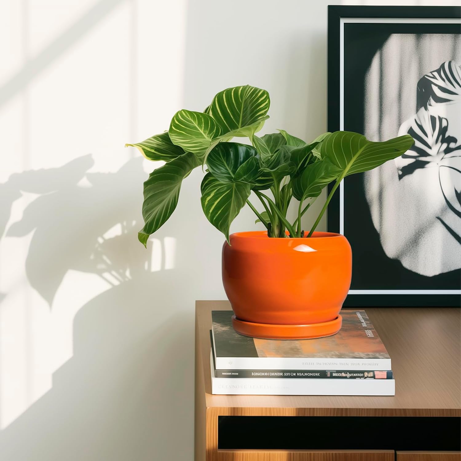 - Modern Design: Our 6 inch plant pot features a beautiful and smooth orange glaze finish, suitable for decorating your window, bedroom, table, book shelf, desk, home, house, patio, porch, balcony, office, garden and more