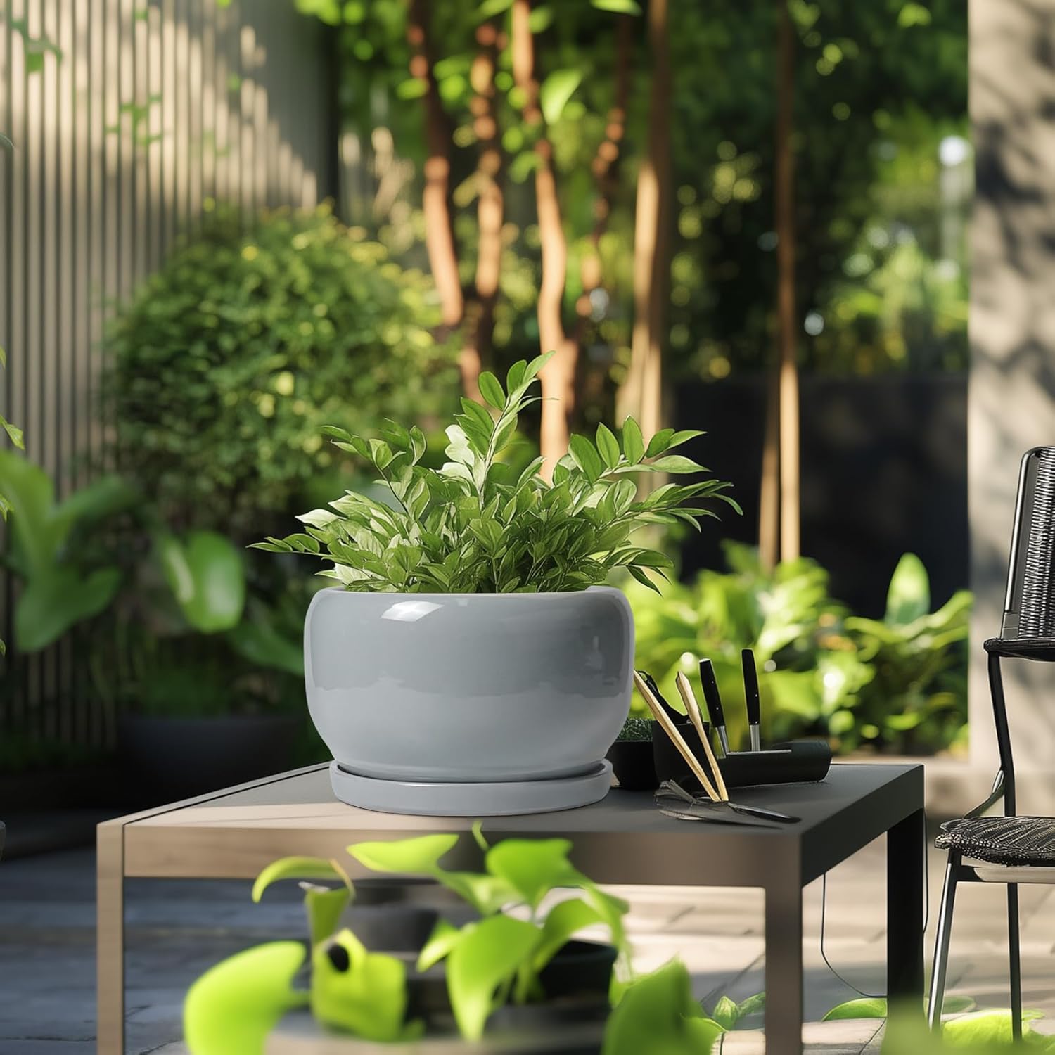 - Modern Design: Our ceramic planter features a beautiful and smooth gray glaze design, suitable for decorating your home, house, kitchen, patio, porch, balcony, office, bathroom, garden, and more