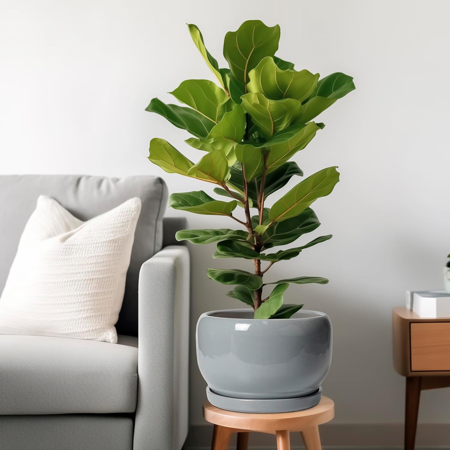 - Drainage Hole and Saucer: Plant pot indoor with drainage hole efficiently removes excess water, helping your plants thrive. The ceramic tray catches any overflow, so you can place the gray planter anywhere with confidence