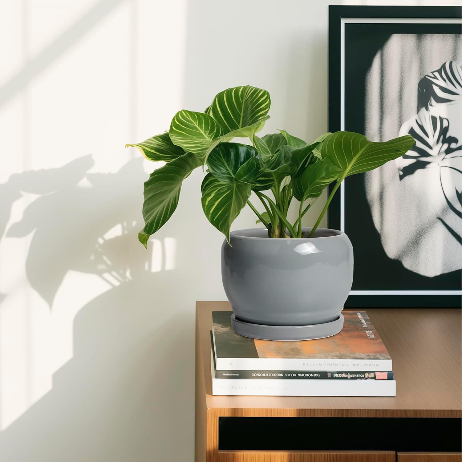 - Modern Design: Our 6 inch plant pot features a beautiful and smooth gray glaze finish, suitable for decorating your window, bedroom, table, book shelf, desk, home, house, patio, porch, balcony, office, garden and more