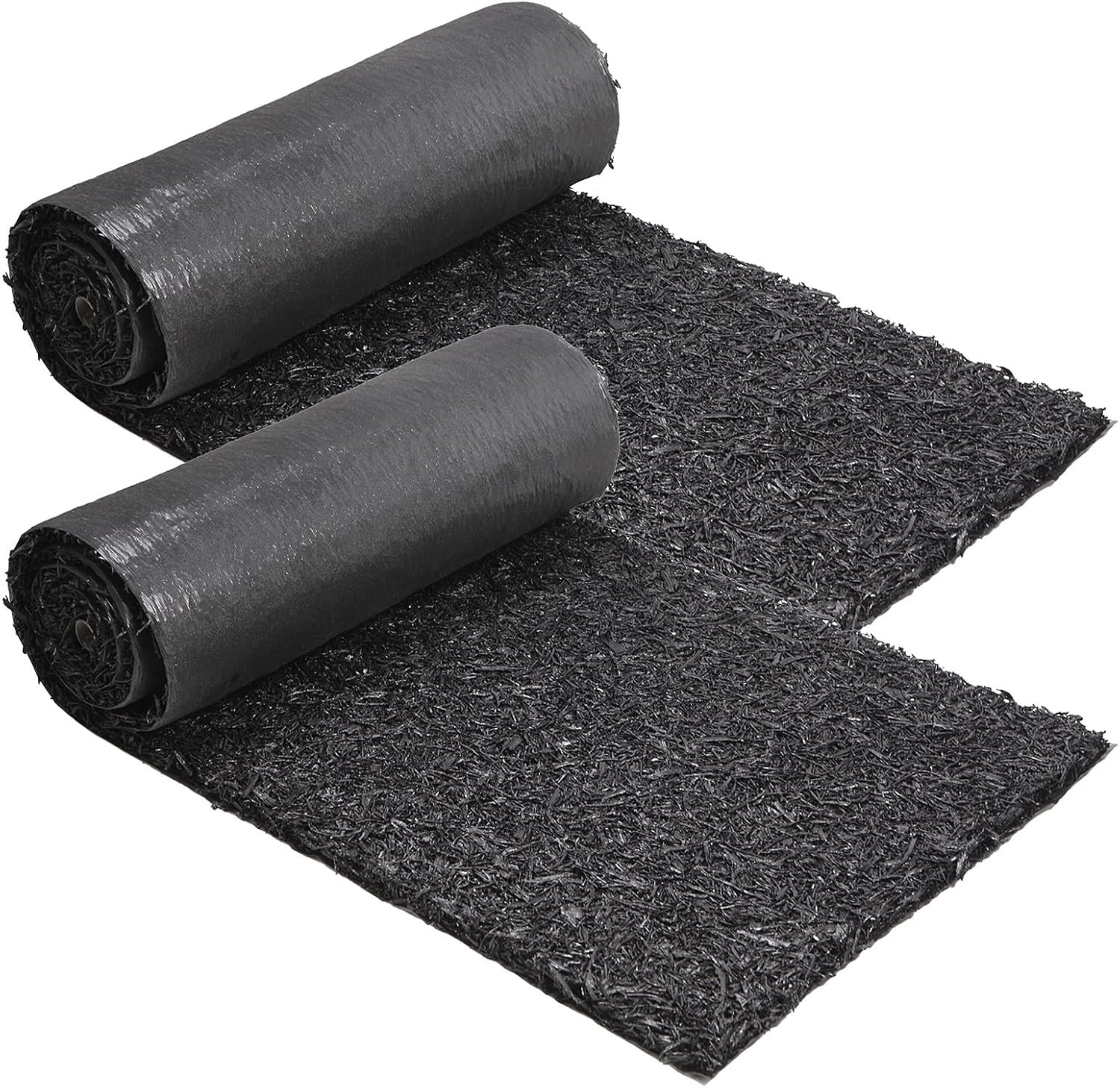 2 Pack Rubber Mulch Roll Mat for Landscaping Recycled Rubber Walkway Black Permanent Mulch Pathway Playground 8' x 2'