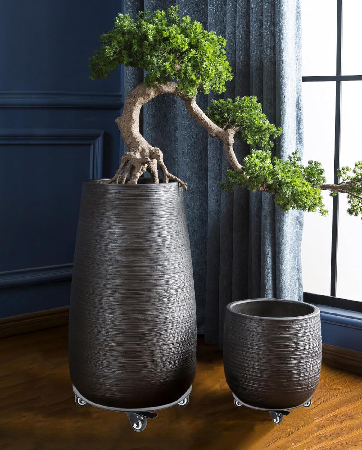 - 【INTERIOR DECORATION】This beautifully designed rolling plant stands with wheels can add natural harmony to your home, the round plant mobile stand with elegant casters and beautiful black baking paint becomes a suitable design element for any house decoration, choosing the right size can hide it while giving your plants a visual sense of movement and adding more fun to your life, the indoor plant stand is a beautiful and sturdy architectural structure.