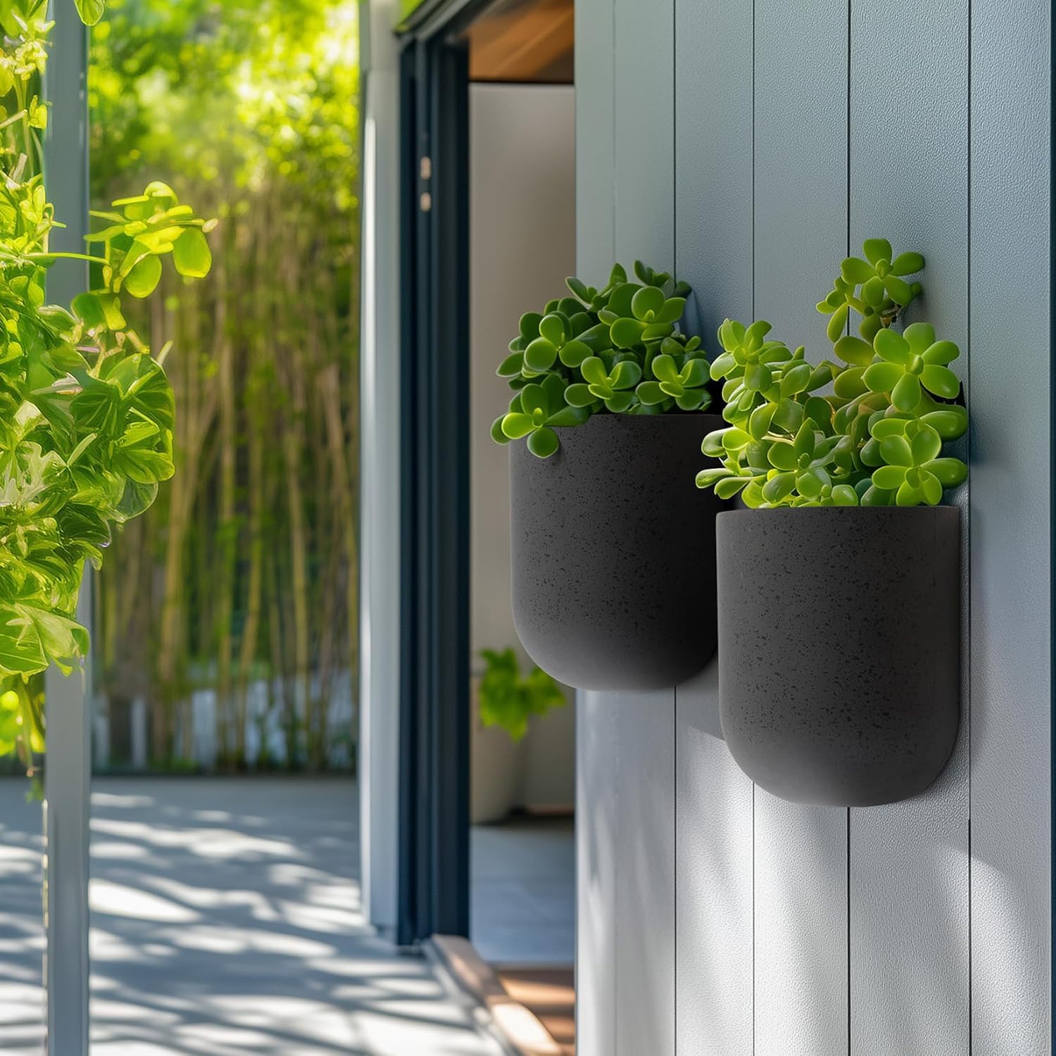 - SLEEK MODERN DESIGN: Featuring a textured concrete gray surface, these charming wall-mounted planters will bring a modern and timeless appeal to any indoor space such as your hallway, staircase, or a cozy spot near sunny windows, and outdoors like your porch, patio, or garden wall