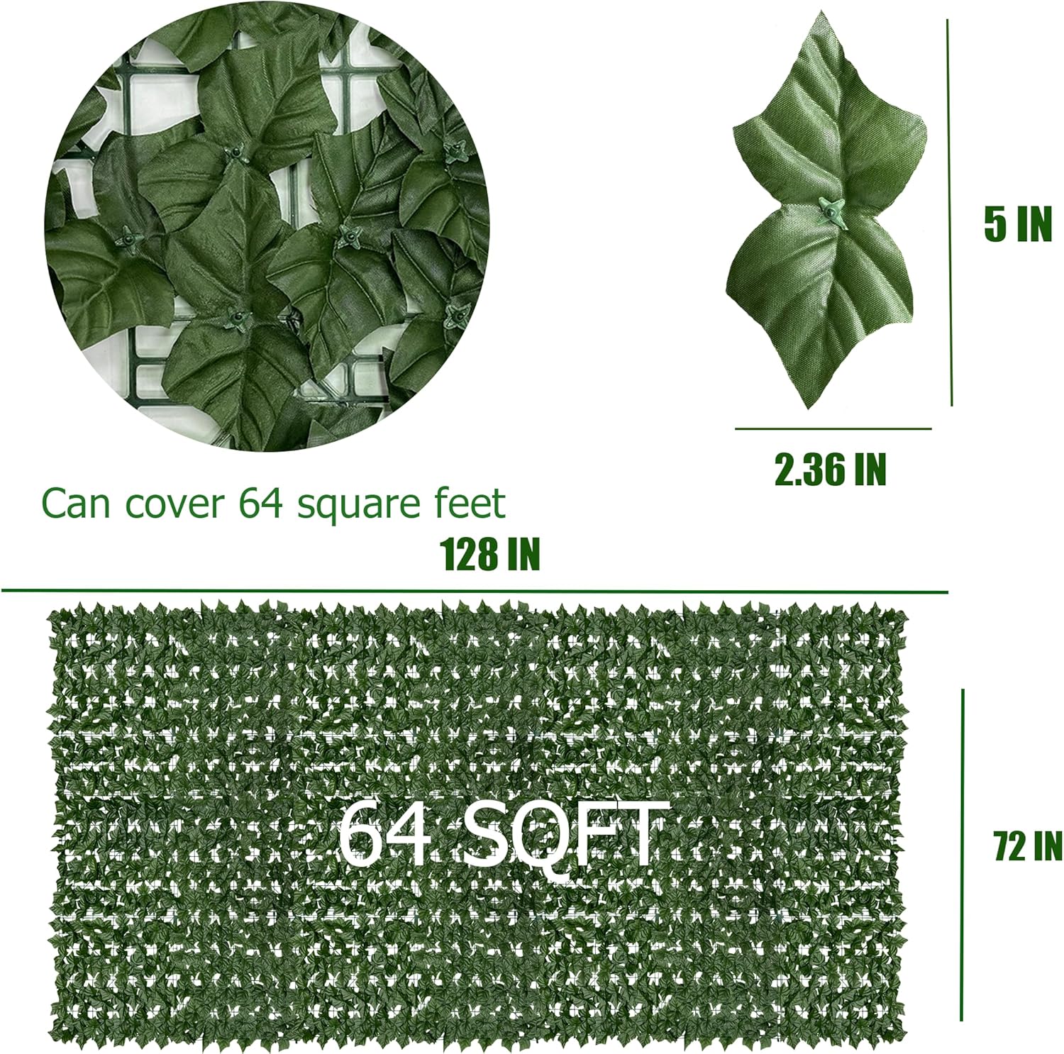 Artificial Ivy Privacy Fence Roll Screen,128" by 72" (64 SQFT) UV-Anti Faux Hedge Fence and Fake Ivy Vine Leaf Wall Panels for Indoor&Outdoor Green Backdrop, Garden Greenery Decor