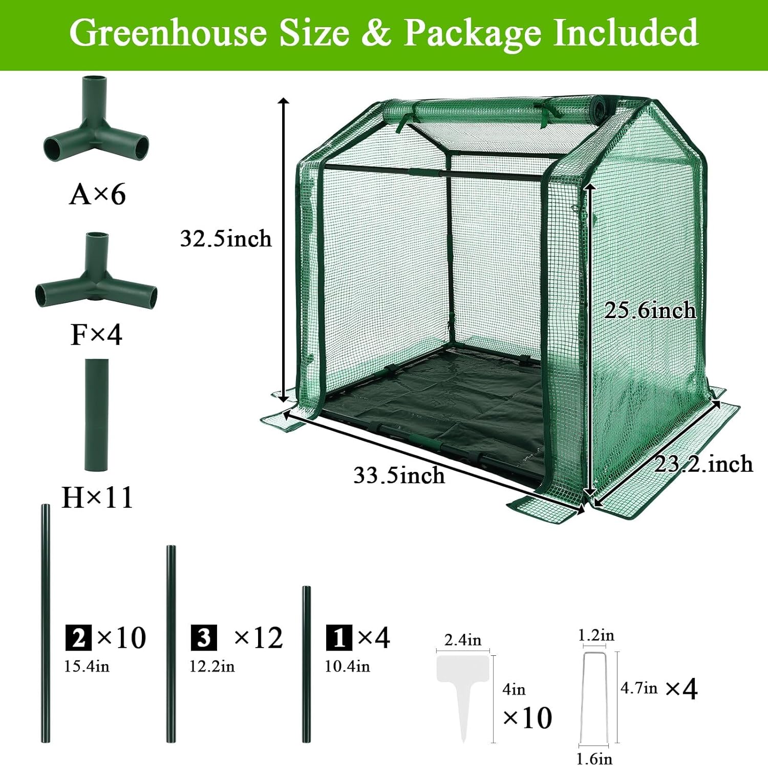 Ileading Small Greenhouse for Outdoor Indoor Portable Mini Garden Green House with Waterproof Pad, 4 Ground Stakes, 10 T-Shaped Plant Tags, Durable PE Plant Cover Tent, 33.5x23.2x32.5 Inch