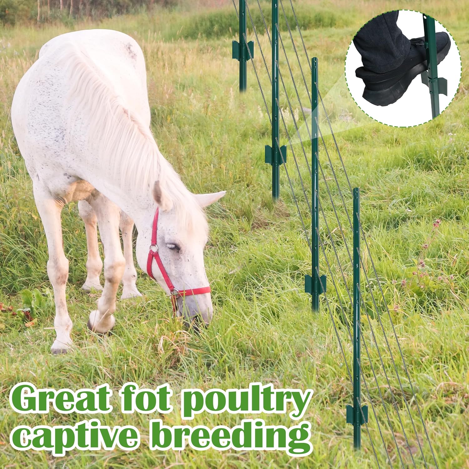 - 【Quick Installation】Installing this fence post is effortless and doesn't require any excavation. Simply use a hammer or post-driver to pound the U-shaped fence posts into the soil until the anchor plate is submerged. The fence wire can be easily secured to the metal post tabs, ensuring the fence is properly elevated and supported. This method saves both time and energy when setting up wire fences, electric fences, or temporary barriers.
