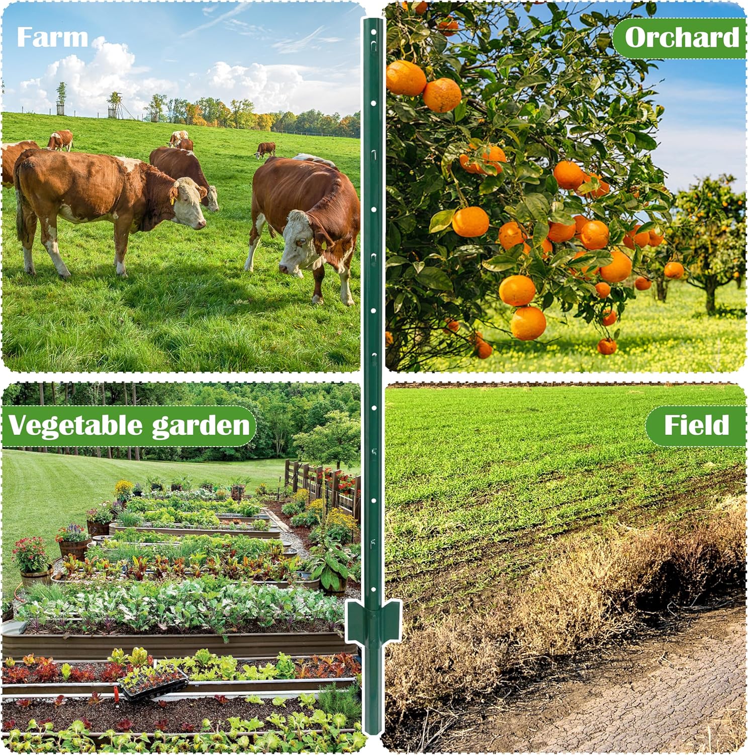 - 【Packing List & Size】Sunnyglade fence posts are ideal for creating boundaries around paths, gardens, and yards. They can be used to establish protective borders for vegetables, flower beds, and other plant areas or contain poultry, like sheep etc. Additionally, U-posts can also serve as supports for fruit bushes, aids in straightening trees, or function as sign posts and driveway markers.