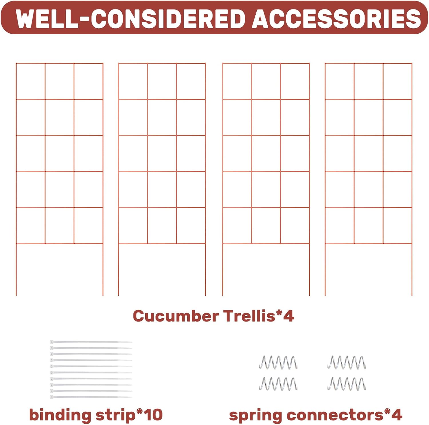 - Wide Applications: cucumber trellis are widely used in gardens and patios. Provides good support for cucumbers, peas, zucchini or other climbing plants. It's perfect for raised beds or in-ground gardens