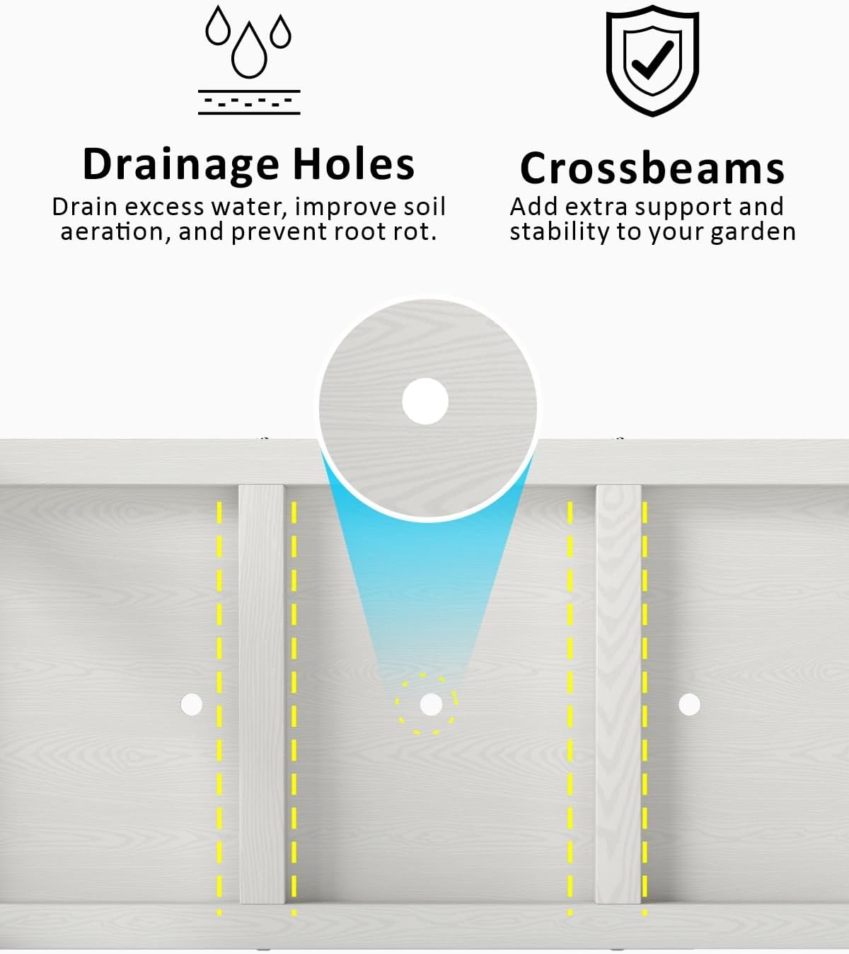 - Efficient Drainage System: Pre-drilled drainage holes prevent waterlogging, keep soil fresh, and ensure roots receive ample oxygen to avoid rot. Your plants will thrive effortlessly year-round, creating a vibrant garden