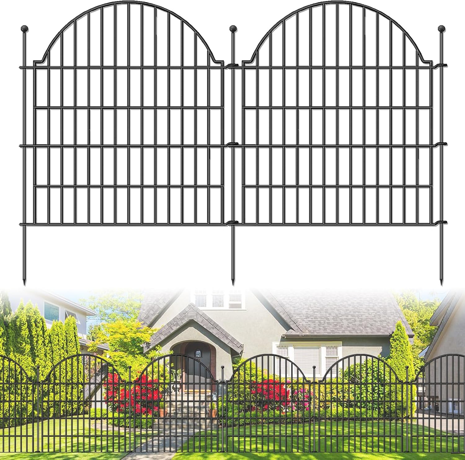 - 【Detailed Dimensions】Blingluck garden fence includes 10 pieces of fence panels measuring 32" H & 29" W, 11 metal stakes that are 35 " H. The Blingluck decorative garden fencing has a total height of 38 inches (7'' metal stakes in soil ), with a 1.8-inch fence gap. Total Length is about 23.6 ft. Easier and more sturdy installation