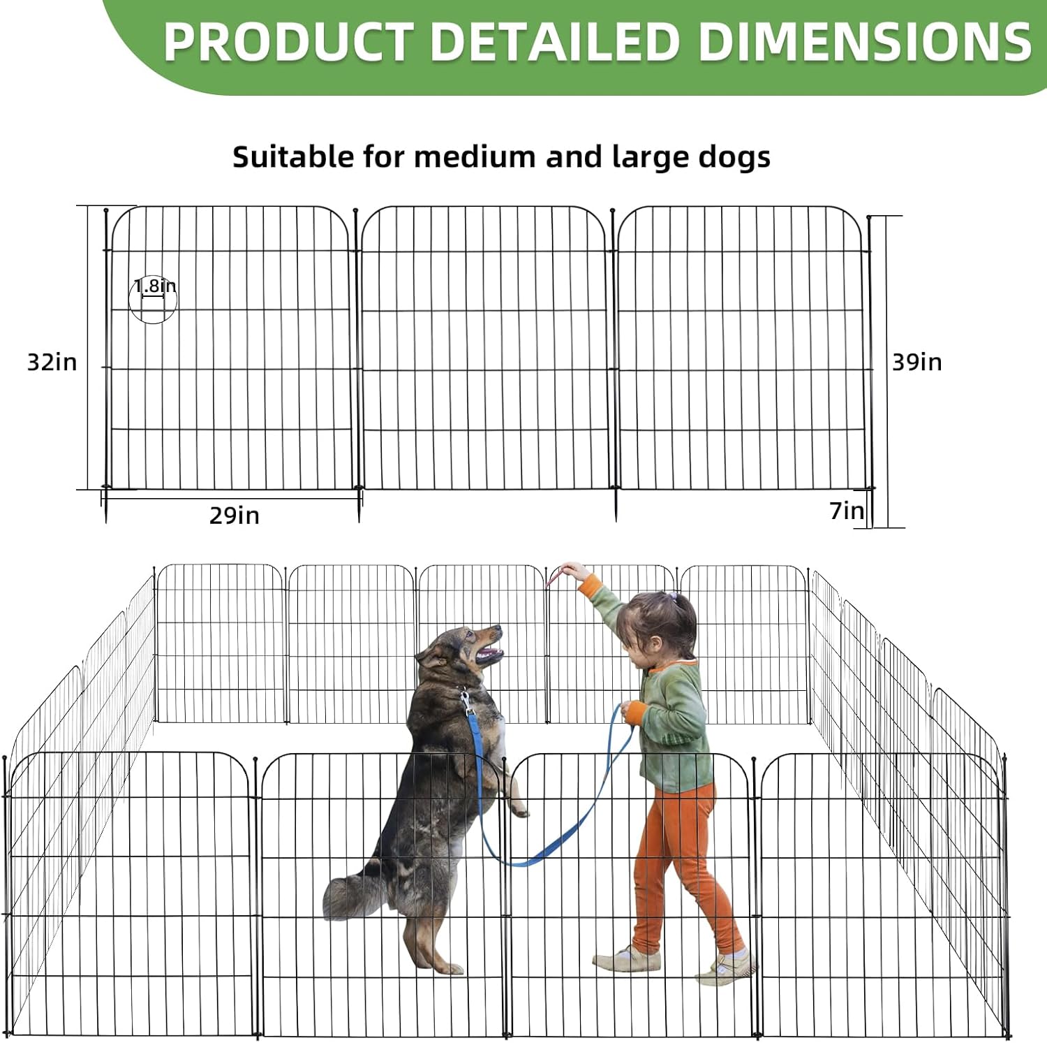 - 【Sturdy & Rustproof】Blingluck outdoor dog fence is made of thickened metal wire for added strength, this fence is built to last and not easy to crack or bend easily. The powder-coated surface is rust-resistant and tough enough to handle the outdoor wind and solarization, it can work for you for a long time
