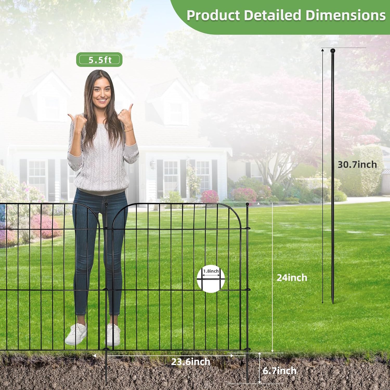 - 【Detailed Dimensions】Transform your garden with the Blingluck tall garden fence! This set includes 10 fence panels (24" W x 24" H), 11 sturdy metal stakes (30.7" H). With a total height of 30.7" (including 6.7" stakes in the ground), a 1.8" fence gap, and an overall length of 20 ft. Keep your garden stylish and secure!