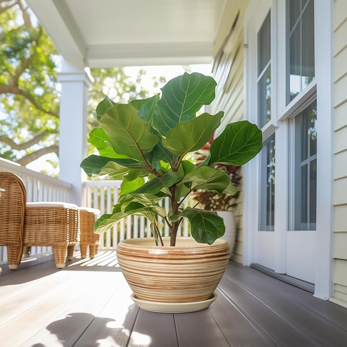 - Drainage Hole and Saucer: There is a drainage hole at the bottom of the 13 inch plant pot, which can discharge excess water and benefit the growth of plants; the lightweight ceramic tray can keep your desktop clean