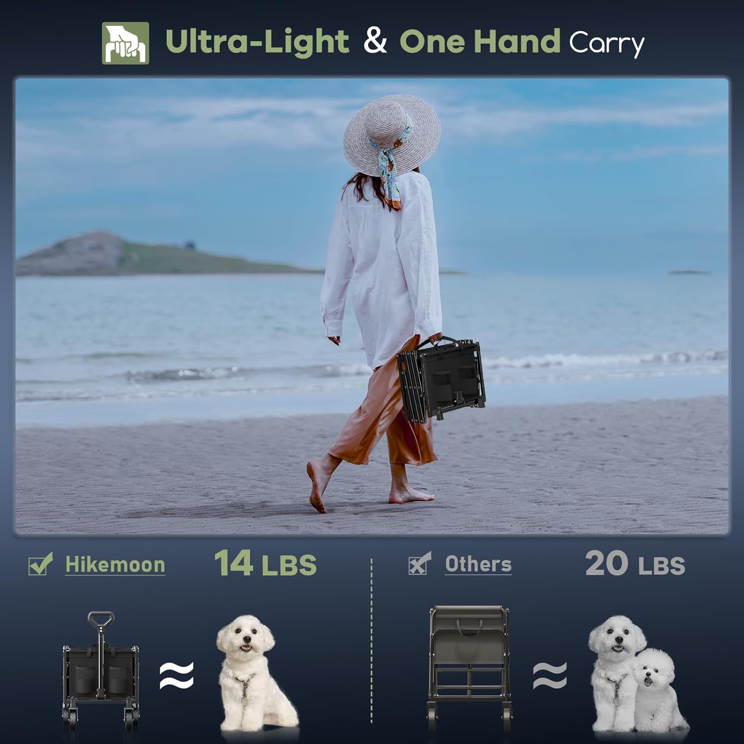 - 【𝟑𝟒" 𝐄𝐱𝐭𝐫𝐚 𝐋𝐨𝐧𝐠 𝐋𝐢𝐠𝐡𝐭𝐰𝐞𝐢𝐠𝐡𝐭 𝐖𝐚𝐠𝐨𝐧 𝐰𝐢𝐭𝐡 𝟏𝟐𝟎𝐋 𝐂𝐚𝐩𝐚𝐜𝐢𝐭𝐲】: Featuring a patented design, this wagon is 50% longer than standard wagons. Its spacious interior easily accommodates long items like folded tents. Despite its large capacity, it weighs only 14 lbs, making it 40% lighter than other wagons! You can carry this portable wagon effortlessly.