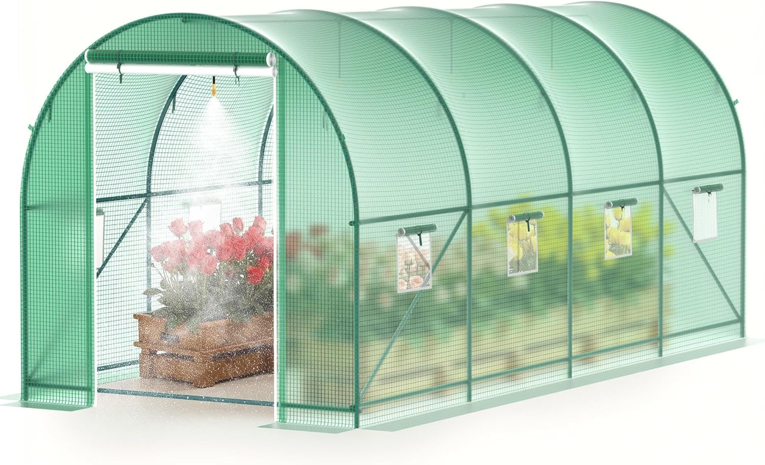 - 【8 Ventilated Screen Windows】 This green houses for outside has 8 screen windows & 2 roll-up doors.Double stitched and reinforced window seams prevent tearing.They allow easy access to the tunnel greenhouse while keeping out unwanted visitors like birds,ensuring air circulation inside for optimal plant growth temperatures.