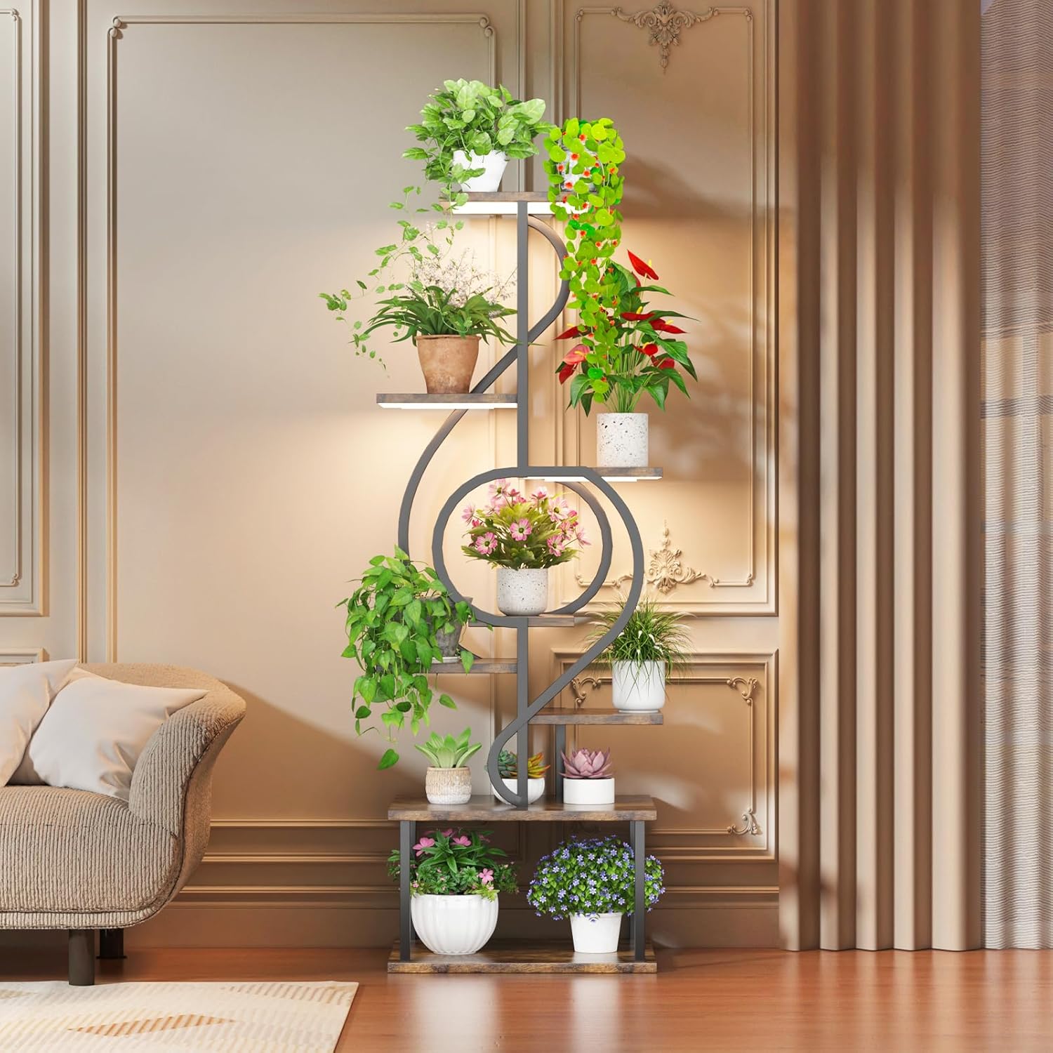 Plant Stand Indoor with Grow Light,8 Tiered Indoor Plant Stand,58" Tall Plant Flower Shelf,Creative Note Shaped Plant Holder for Home,Patio,Brown