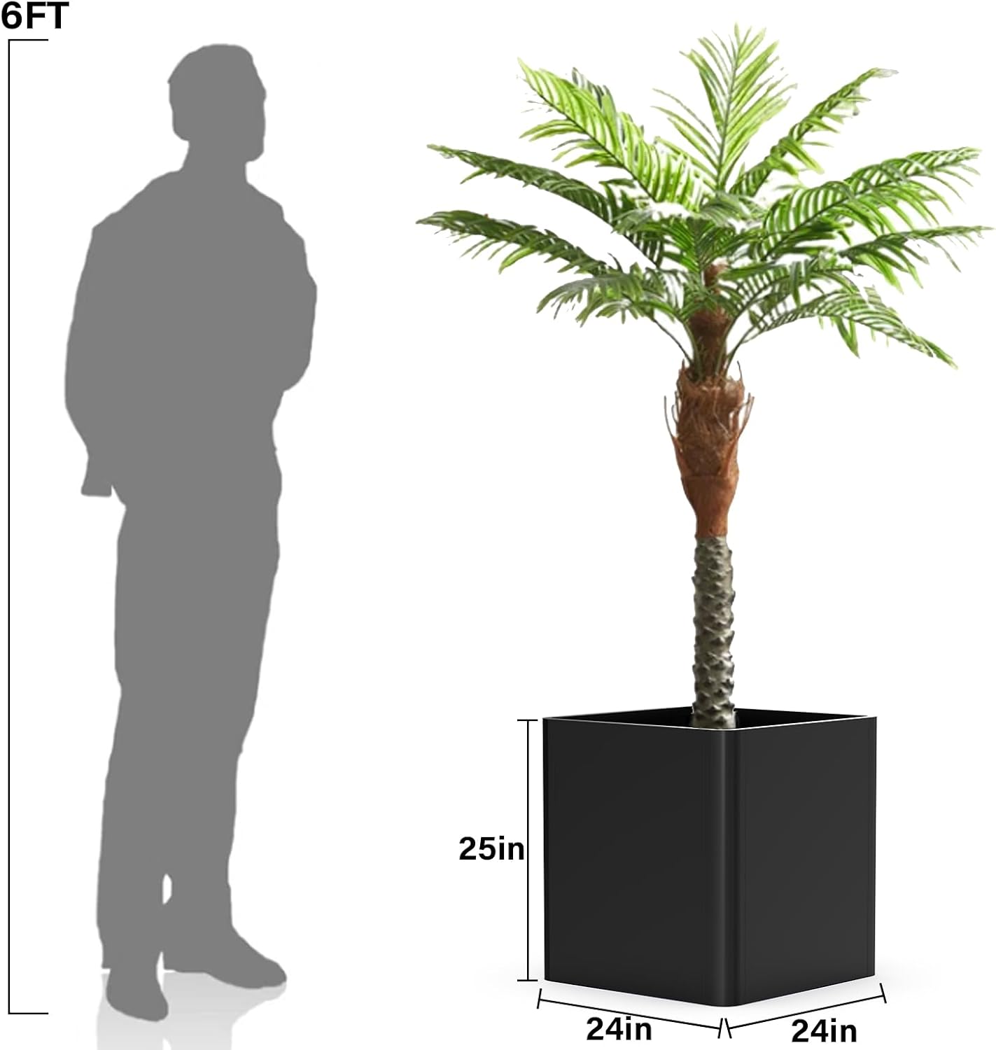 Metal Square Planter Box, Galvanized Steel Planters for Outdoor Plants, 24"x 24"x 25" Black Large Outdoor Planters with Drainage Hole for Porch/Patio/Garden