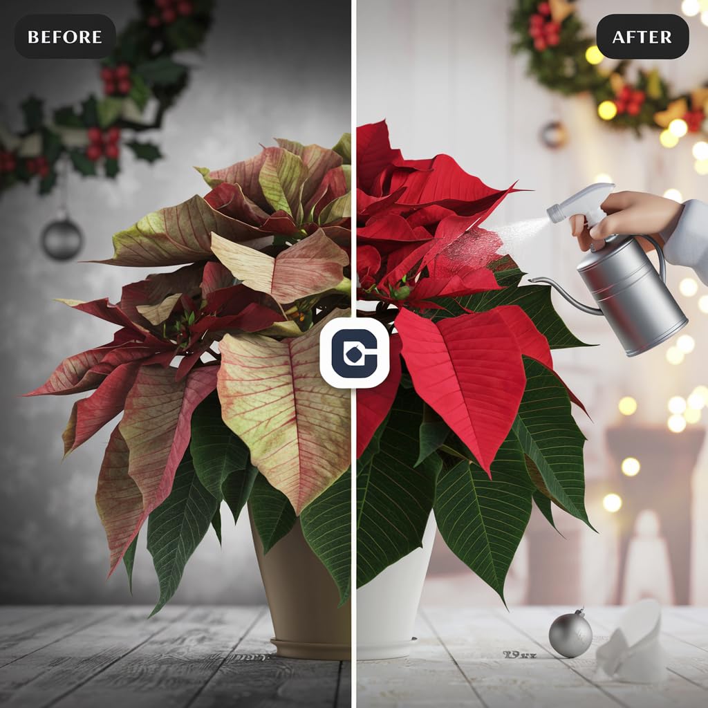 - 🪴 Maintains Lush Greenery: Nourishes leaves and stems to ensure your poinsettia stays fresh, healthy, and full throughout the festive season.