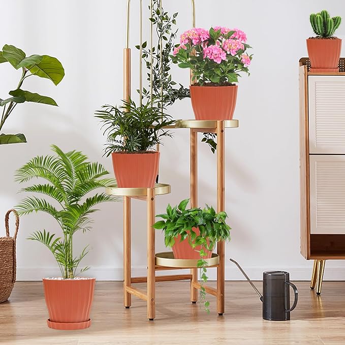 Plastic Flower Pots, 5 Pack 6 inch Indoor Plant Pots Planters for Outdoor Plants Flowers Garden Patio Home Nursery Decor Gifts,Large Succulent Pots with Drainage Tray Saucer & Hole Terracotta