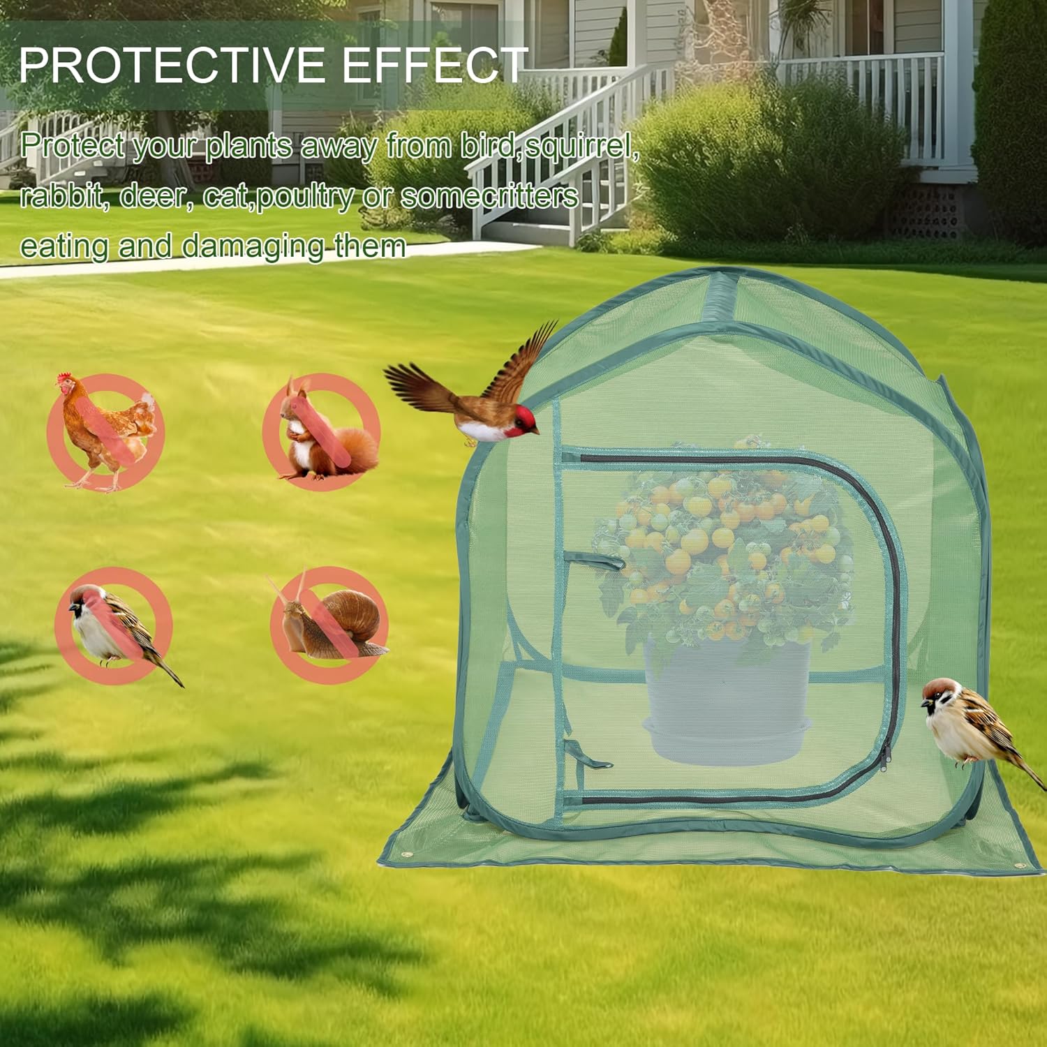 - Convenient Design:It includes a D-shaped zippered door for effortless access to move plants and herbs. Its design allows for a snug fit against plant tents and garden structures, thereby optimizing pest barrier effectiveness and providing robust protection against animal intrusion. Additionally, it features a widened apron with lacing on all sides that can be weighted down to enhance stability